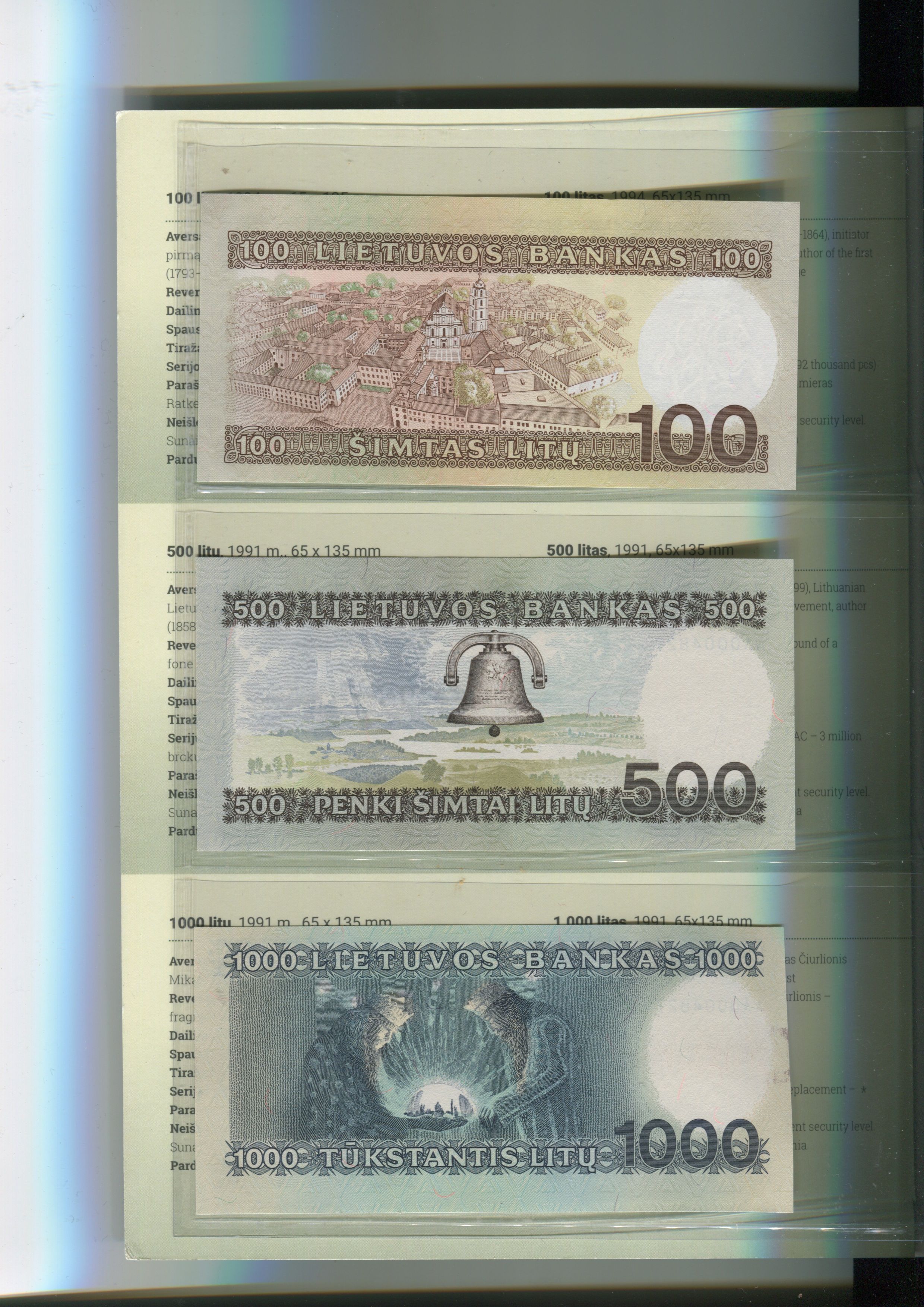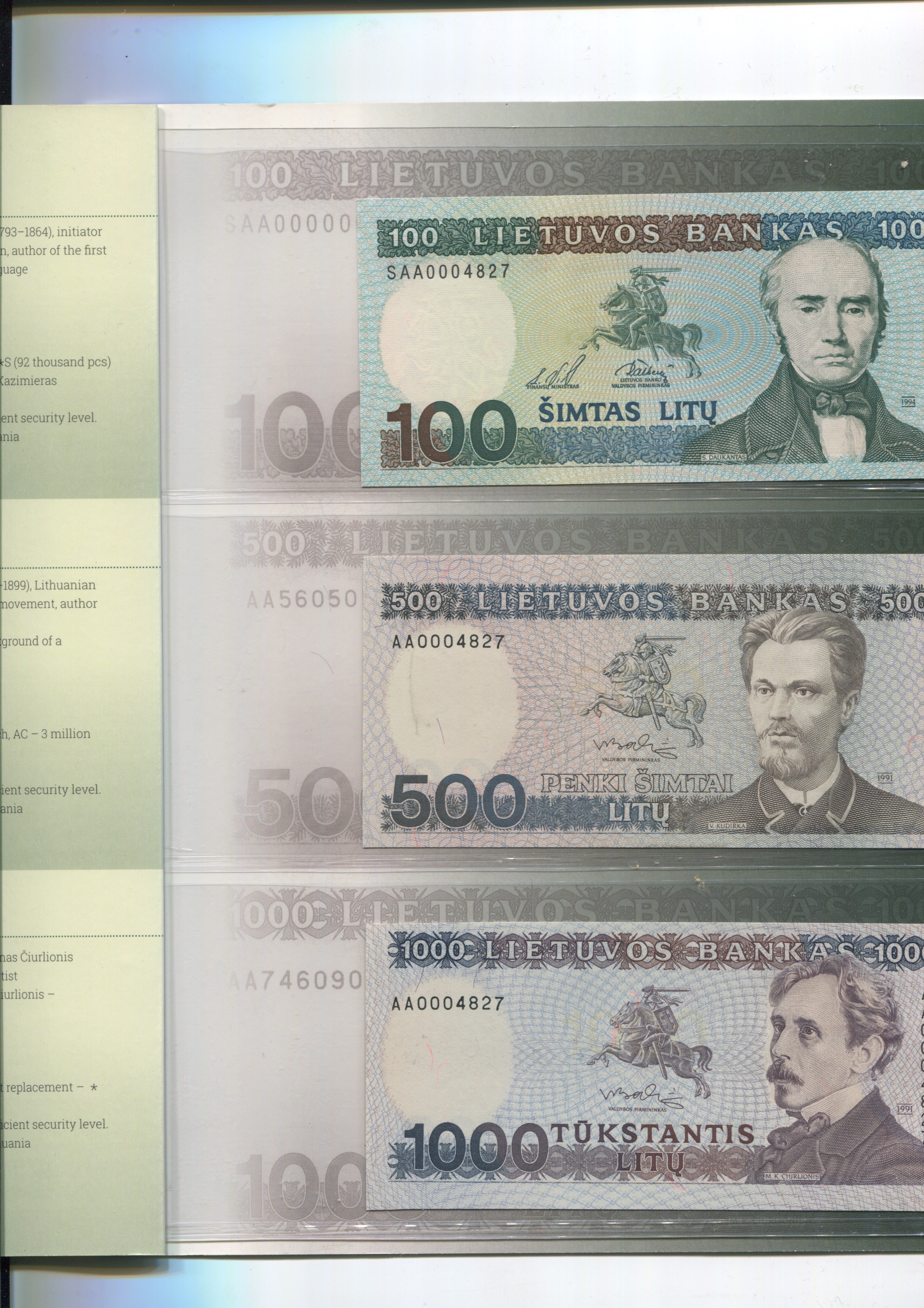 Lithuania 100 - 500 - 1000 Litu 1991 - 1994 The Same Number PMG 64-65 EPQ Gem UNC