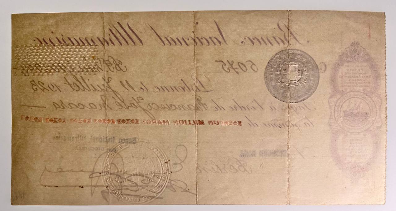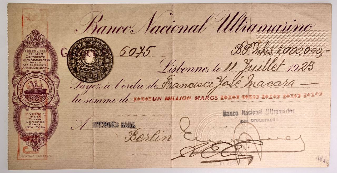 Portugal Banco Nacional Ultramarino Lisbonne 1 Million Marks 1923