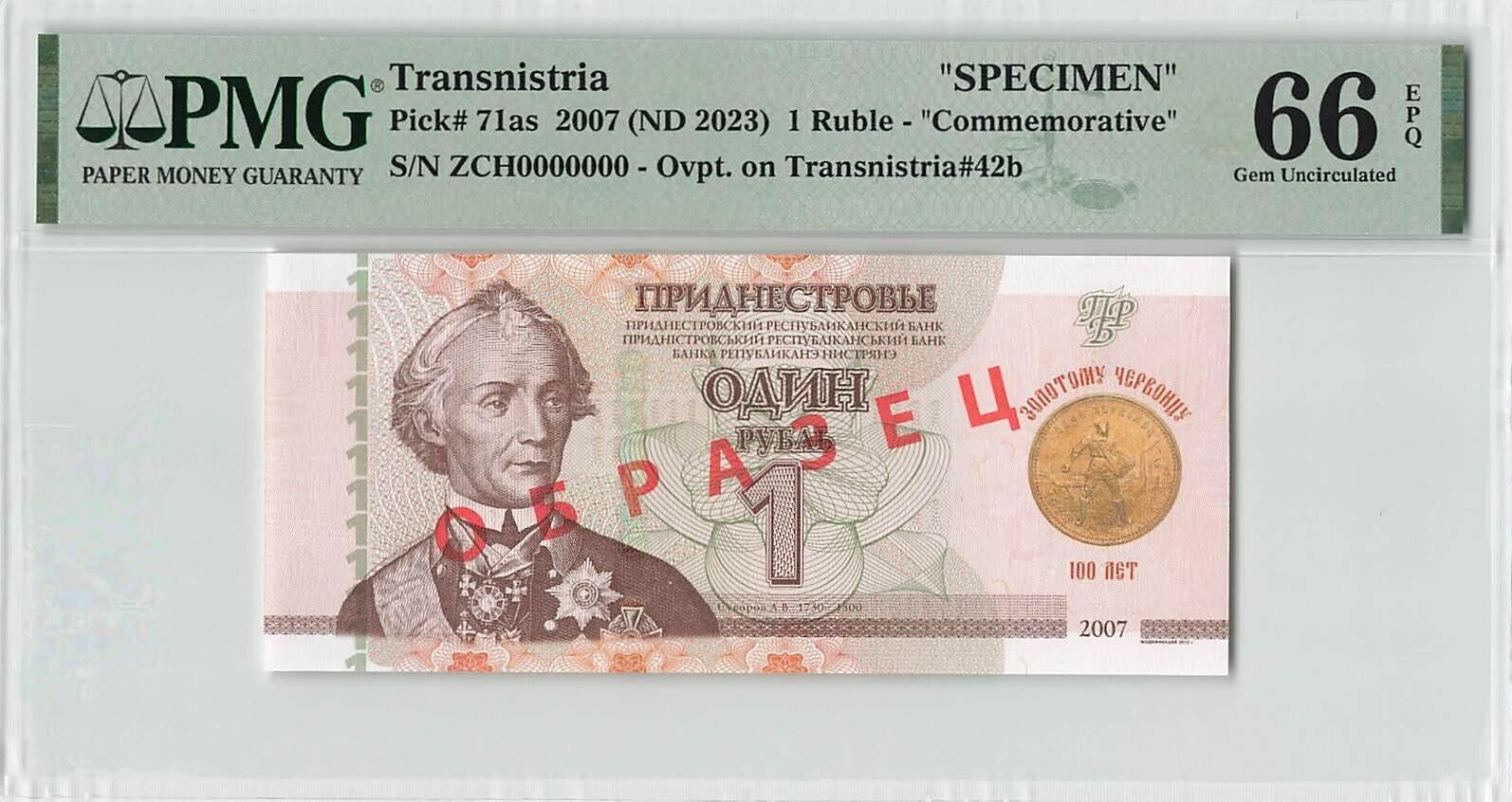 Transnistria 1 Ruble 2023 Specimen Приднестровье Сеятель Червонец PMG Gem UNC 66 EPQ