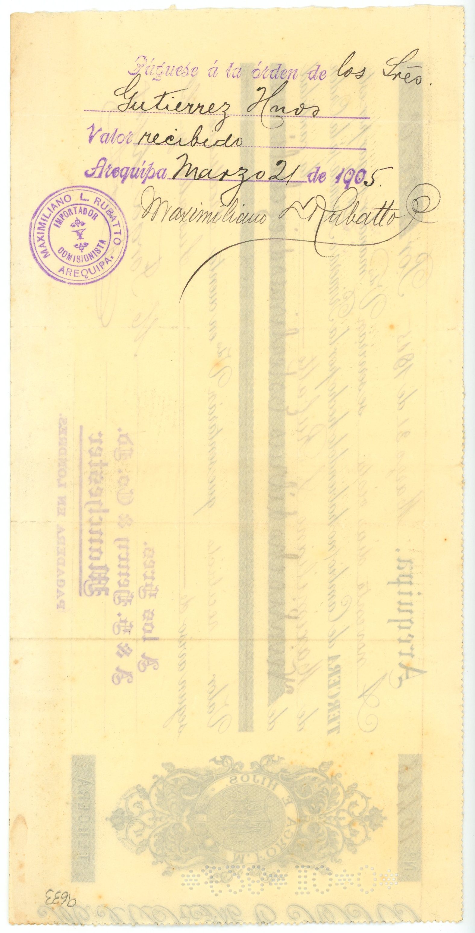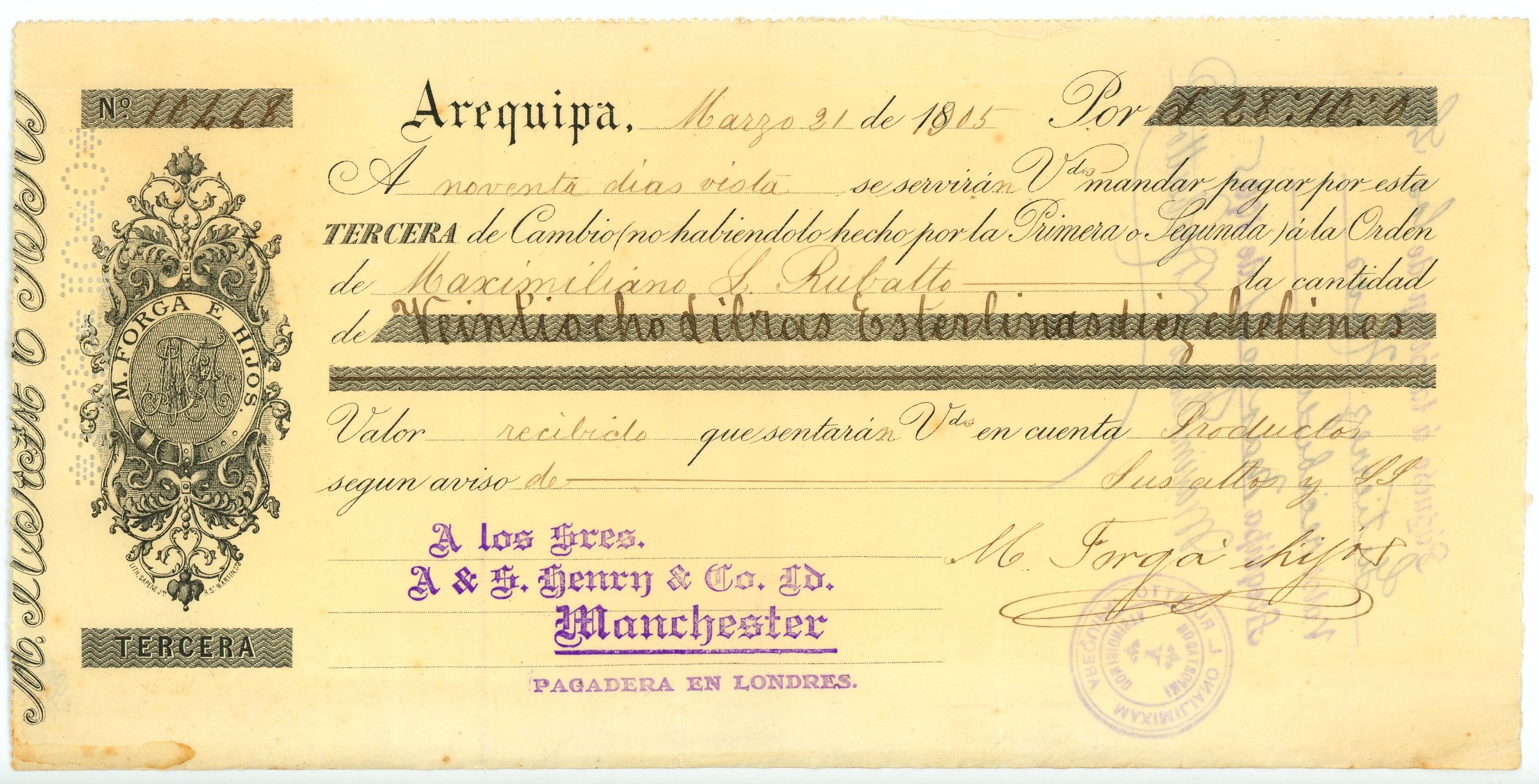 Peru N Forga e Hijos Arequipa £28-5-0 1905