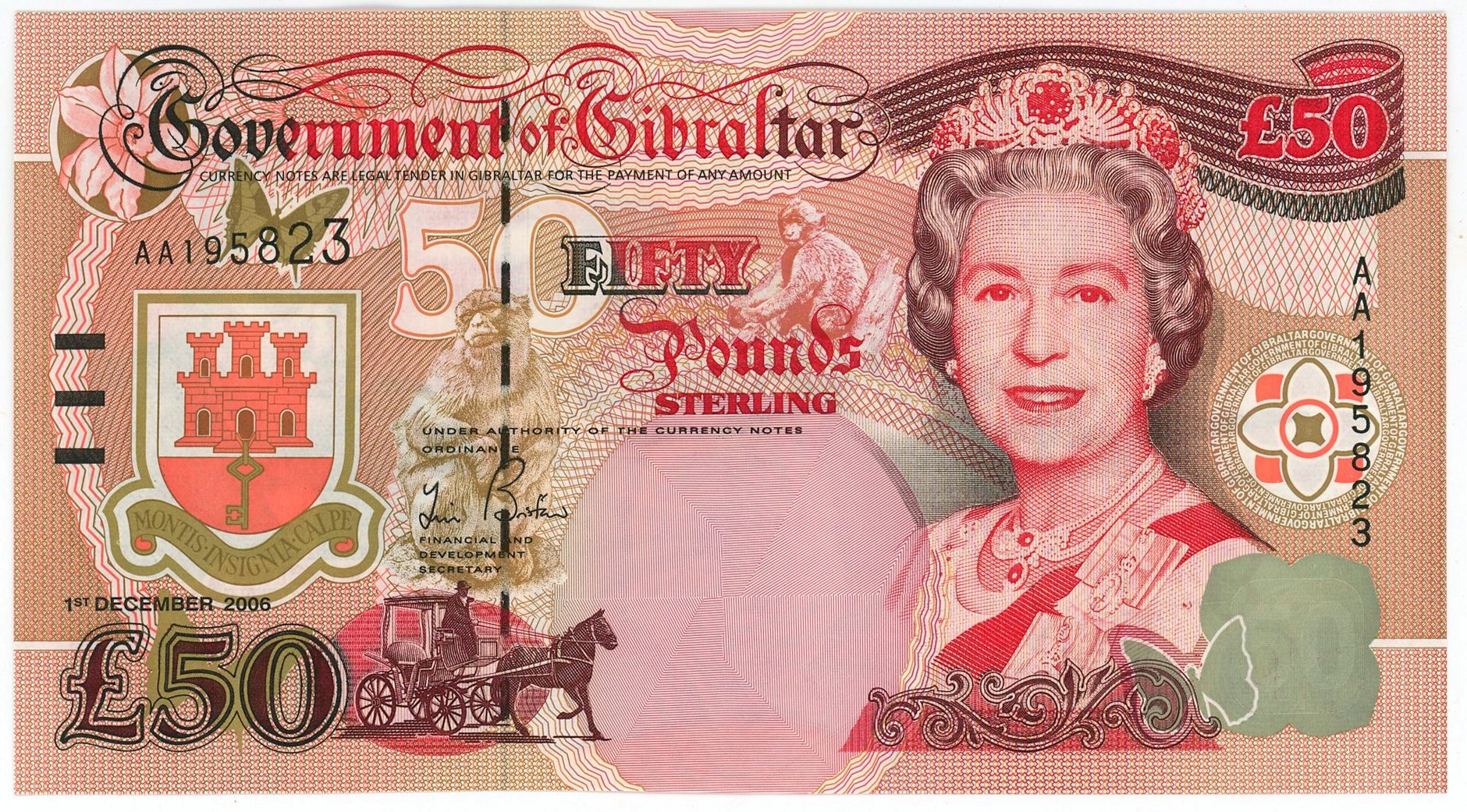 GIBRALTAR, 50 pounds, 2006, QEII, P-34, UNC, CHURCHILL