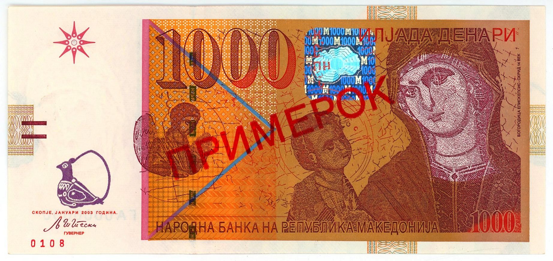 Macedonia 1000 denar 2003 Specimen P# 22s