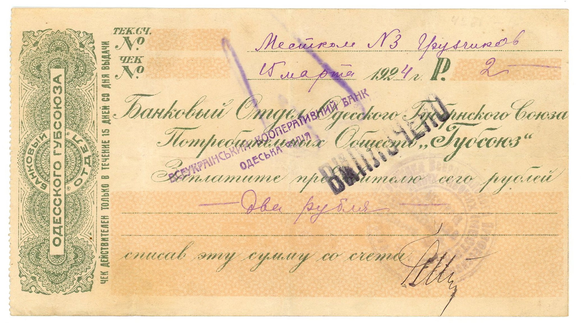Россия – Украина Одесса ГУБСОЮЗ 2 рубля 1924 г.