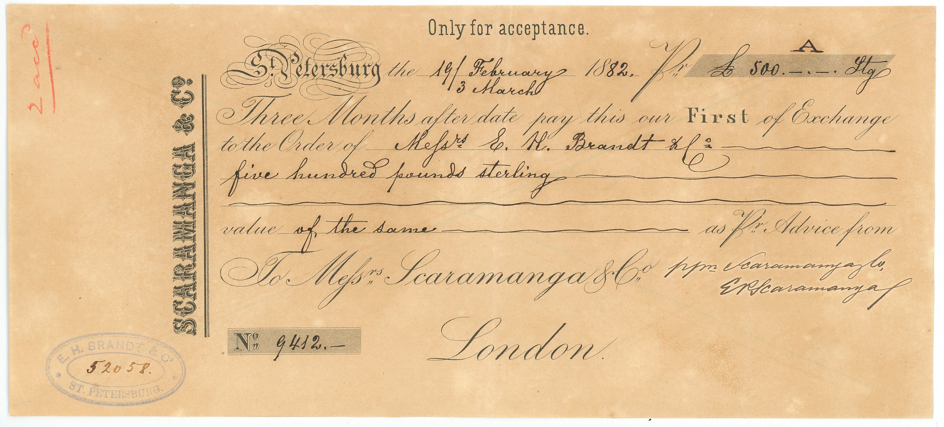 # 9414 Ivan Amvrosievich Scaramanga ( 1820 – 1902 , Taganrog ) – Russian industrialist of Greek origin, landowner, Belgian consul in Taganrog ,one of the founders of the Azov-Don Bank and the Russian Bank for Foreign Trade. Hand signed by Ivan Scaramanga