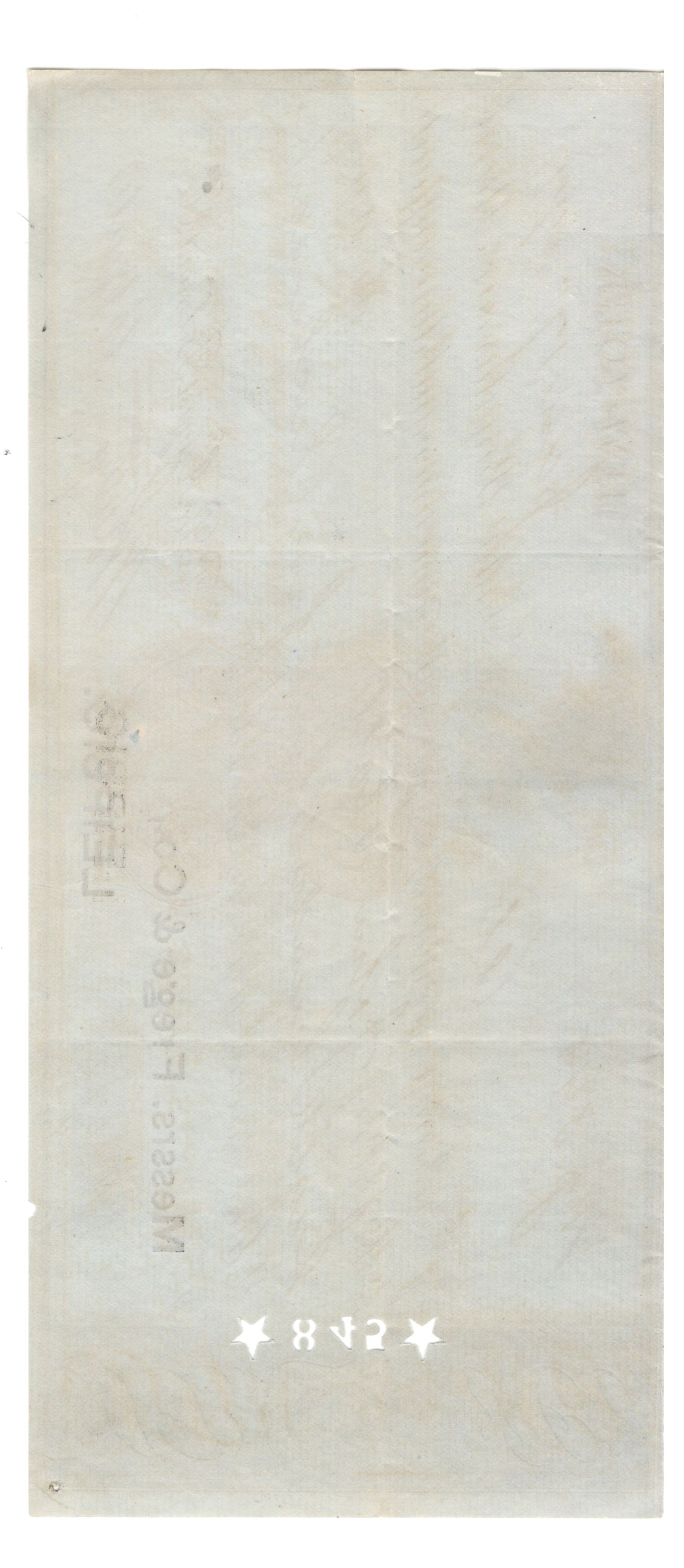 Elegant third of exchange issued by August Belmont & Co., a premier New York banking house, in favor of John Tholen for 835 Reichsmarks, payable by Messrs. Frege & Co. in Leipzig. Printed by American Bank Note Co., featuring a large ornate red “3,” a heraldic crest, and an eagle vignette. A beautiful example of transatlantic financial documentation from the Gilded Age, highlighting U.S.-German commercial ties and hetitage of Jewish German bankers at Wall Street
