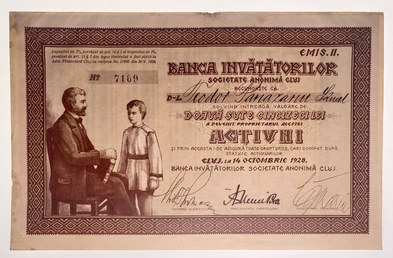 Romania Transylvania Banca Invatatorilor SA Cluj Share for 250 Lei 1928