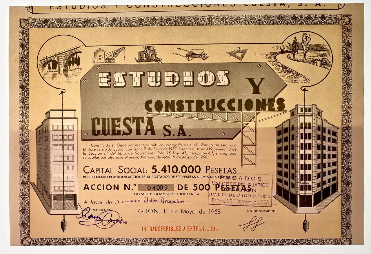 Spain Estudios y Construcciones de Guesta Accion de 500 pesetas 1958
