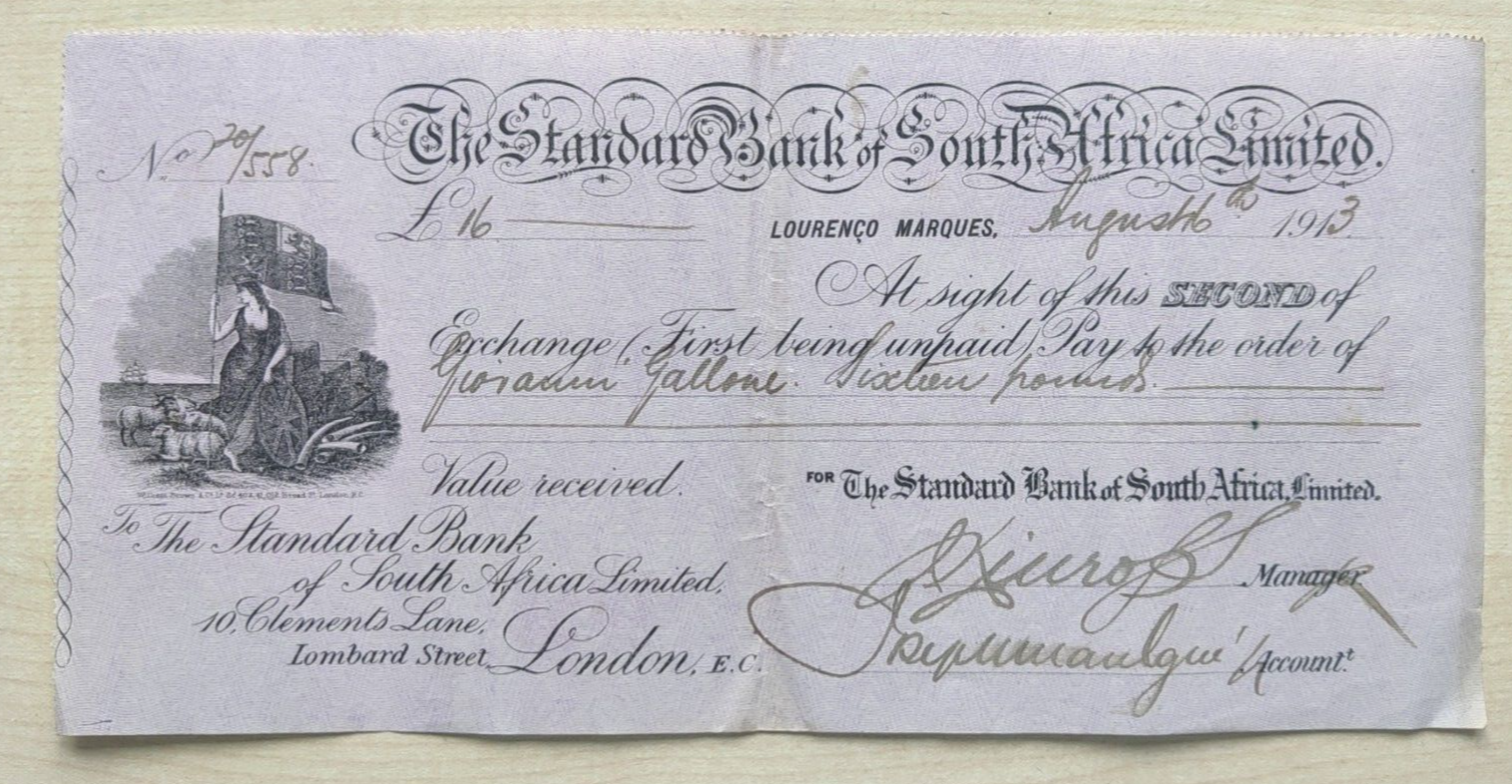 Standard Bank of South Africa Mozambique Bill of Exchange 1913 Lourenço Marques