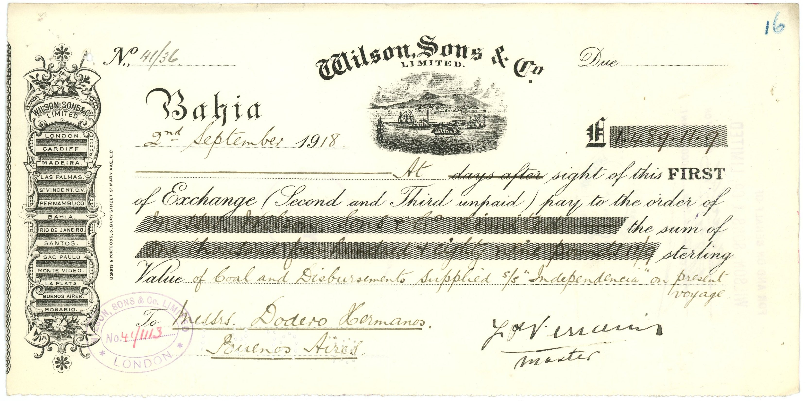 # 41/36 Wilson Sons still exists as a Brazilian shipping company and it’s one of the oldest private enterprises in Brazil. The firm was set up in Salvador in 1837 by two Scottish brothers, Edward and Fleetwood Pellow Wilson. XF