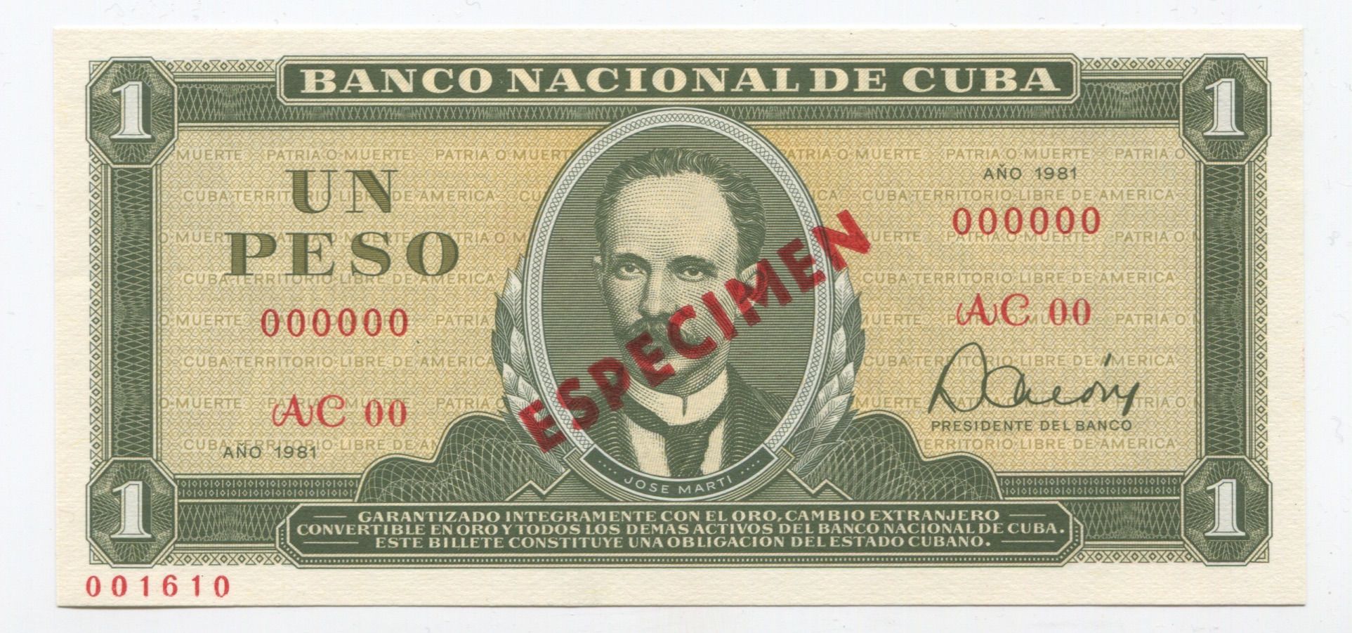Cuba 1 Peso 1981 Specimen