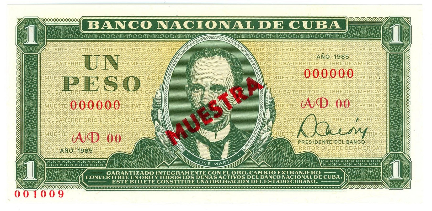 P# 102bs N# 205099 # AD00 000000 Bold overprint MUESTRA in red across the center at each side UNC