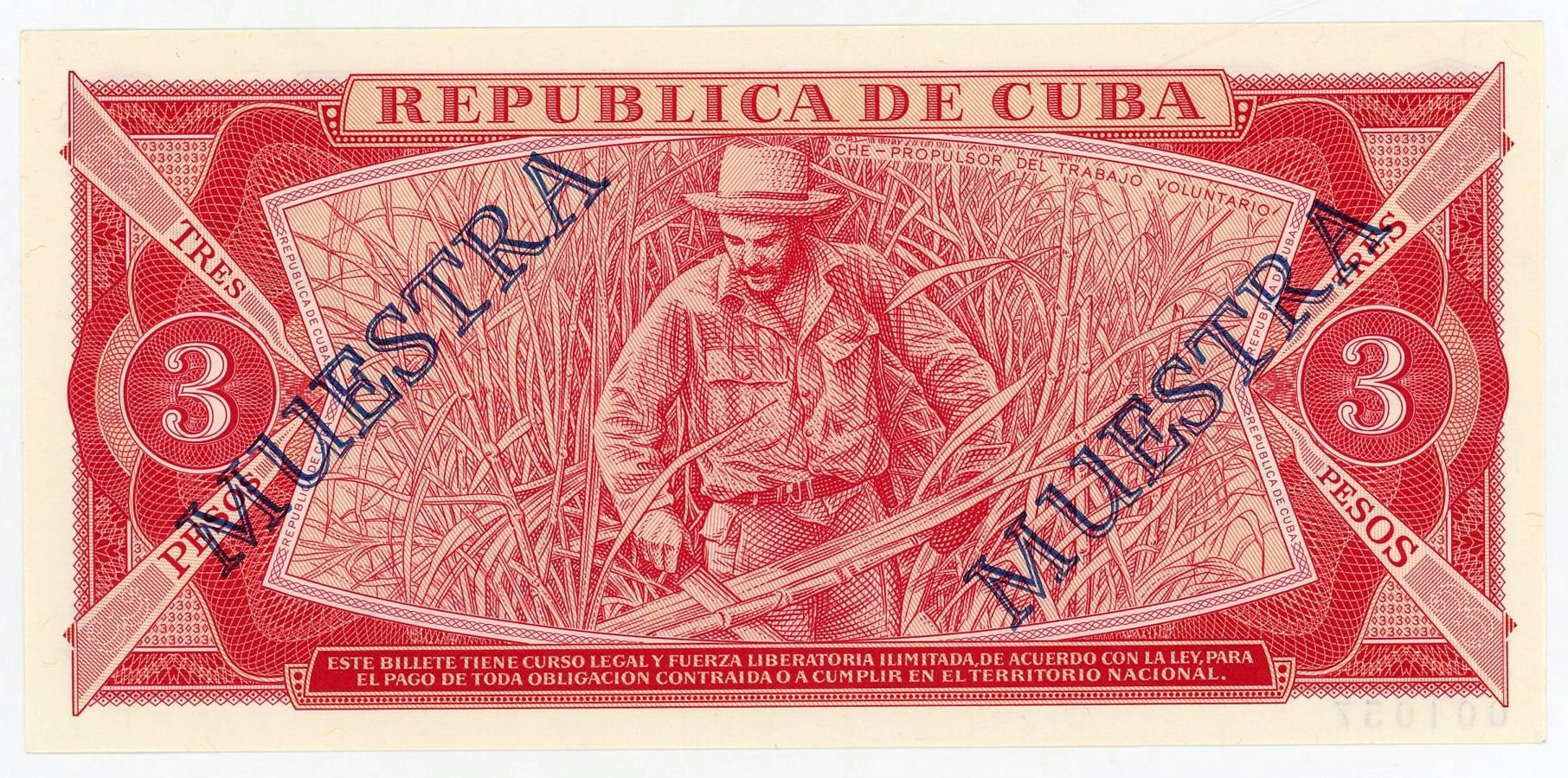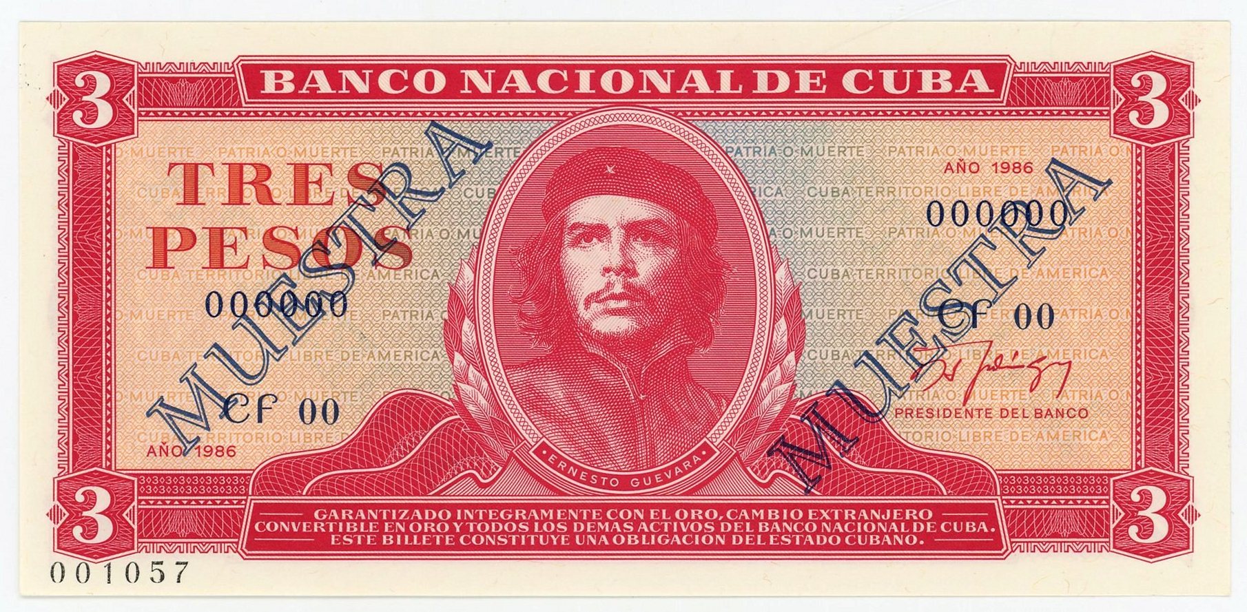 Cuba 3 Pesos 1986 Specimen with black overprint Muestra twice at each side