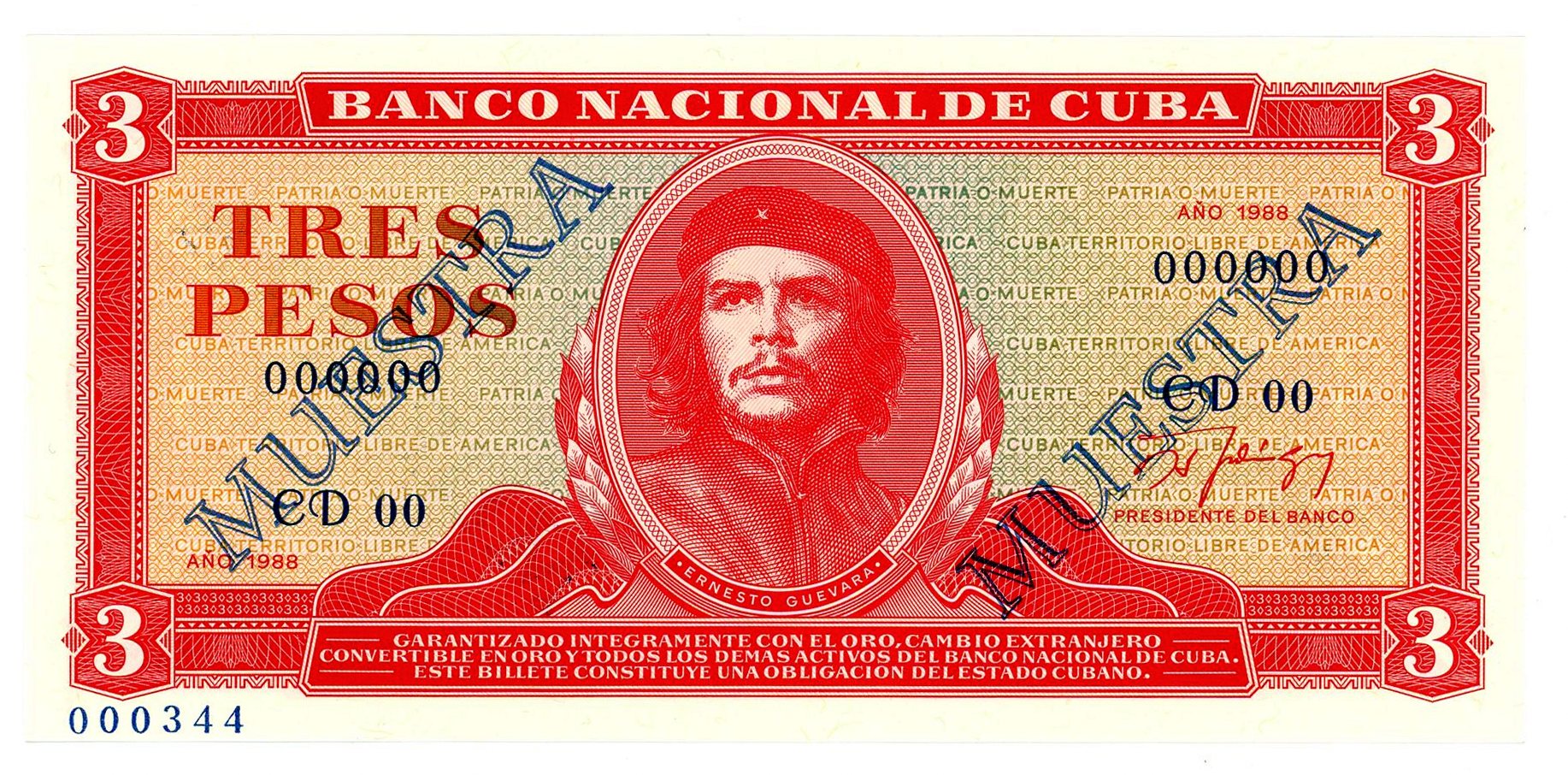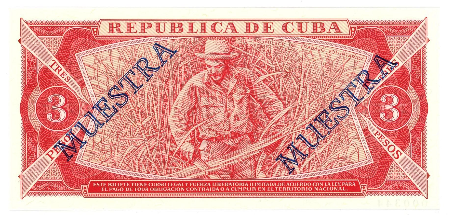 Cuba 3 Pesos 1988 Specimen with black overprint Muestra twice at each side