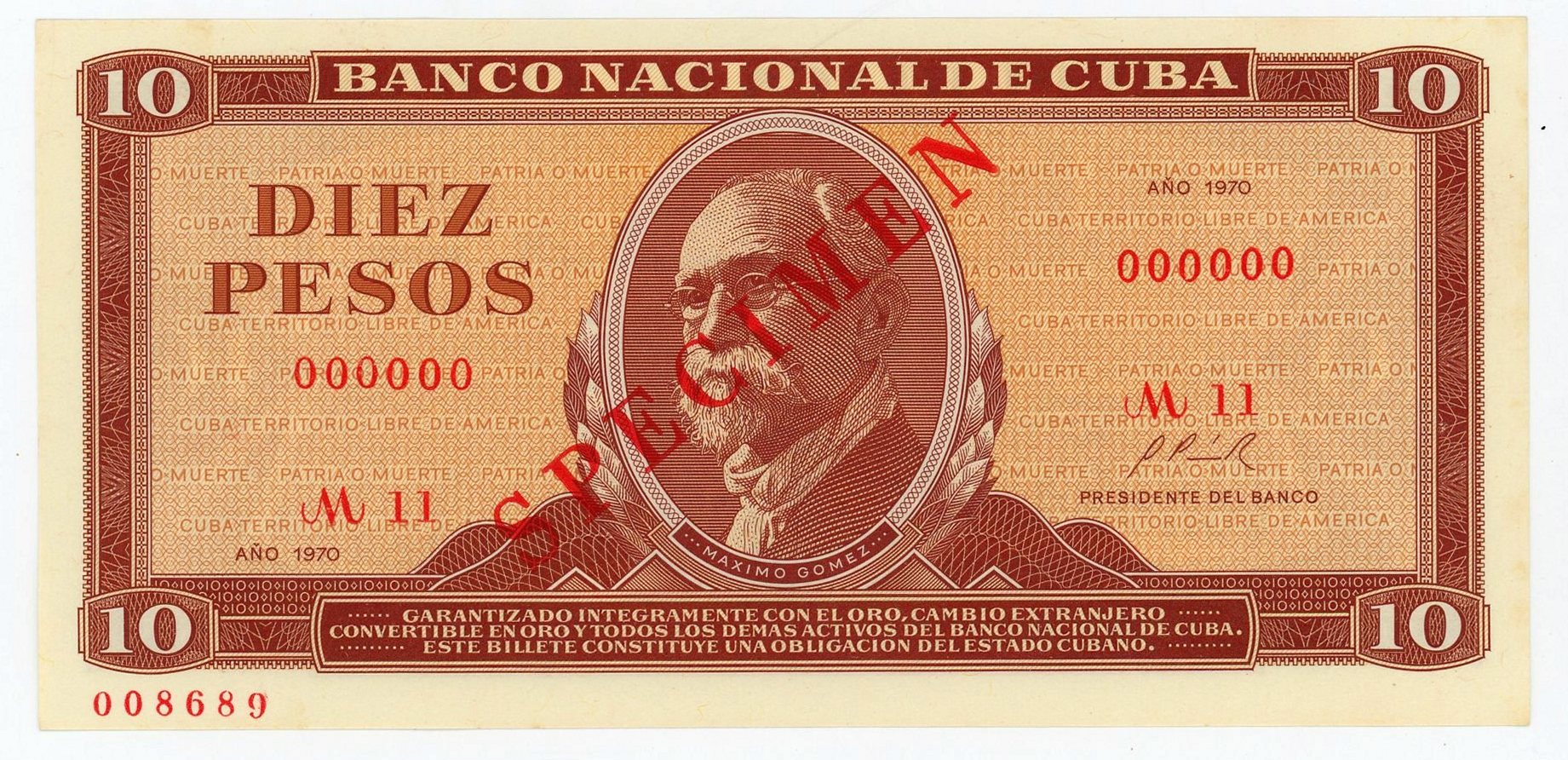 Cuba 10 Pesos 1970 Specimen