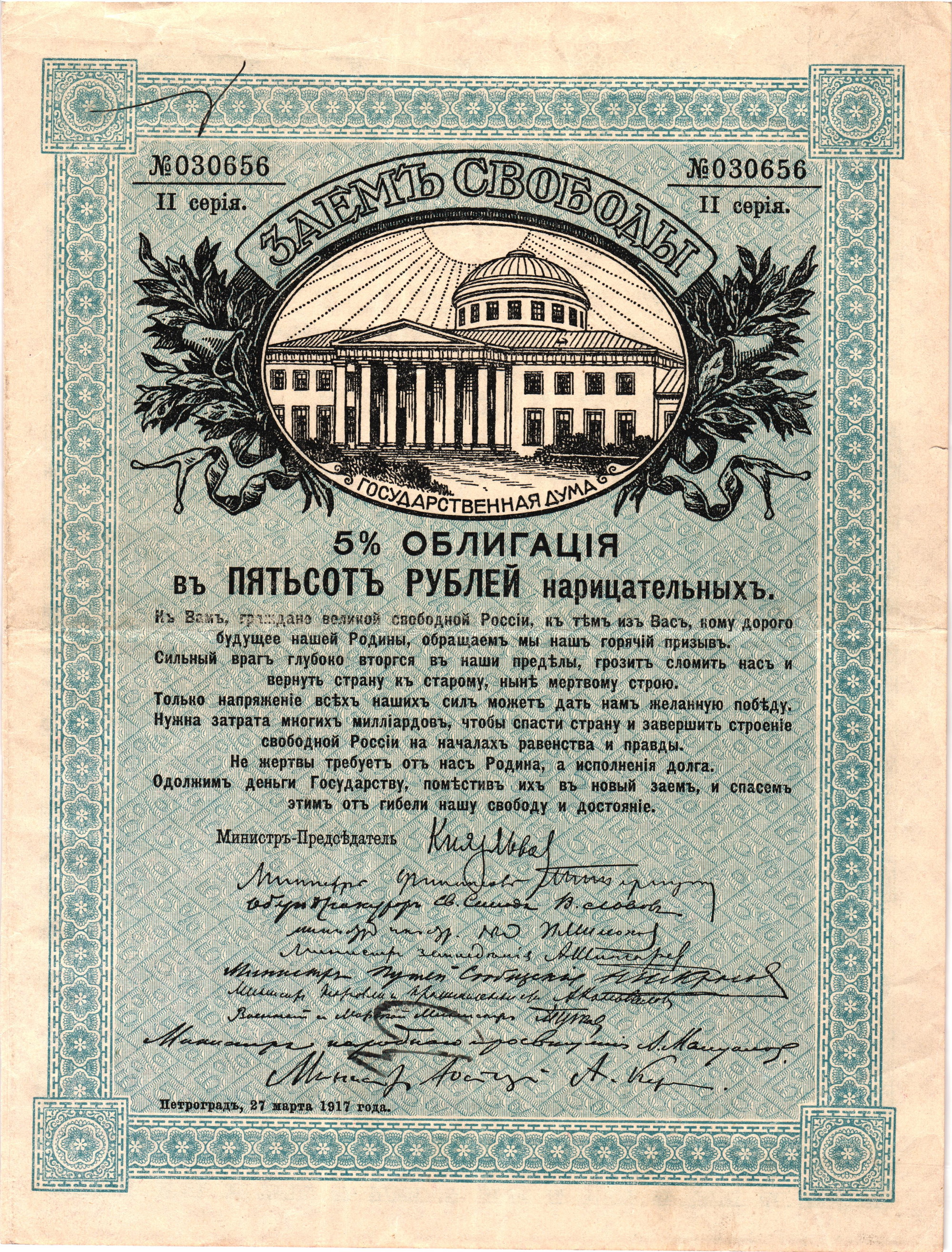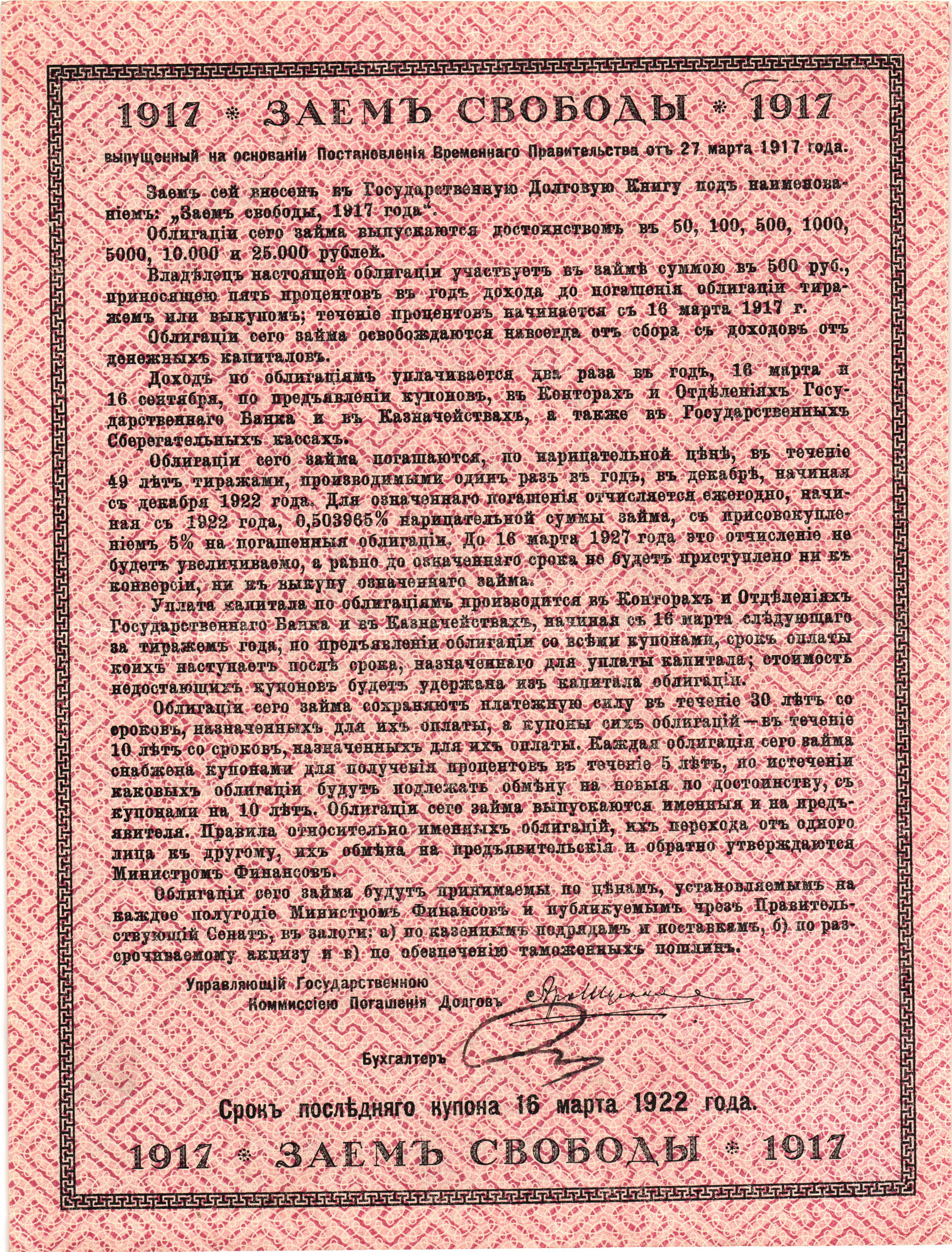 Russia RSFSR 5% Freedom Loan of 500 Roubles 1917