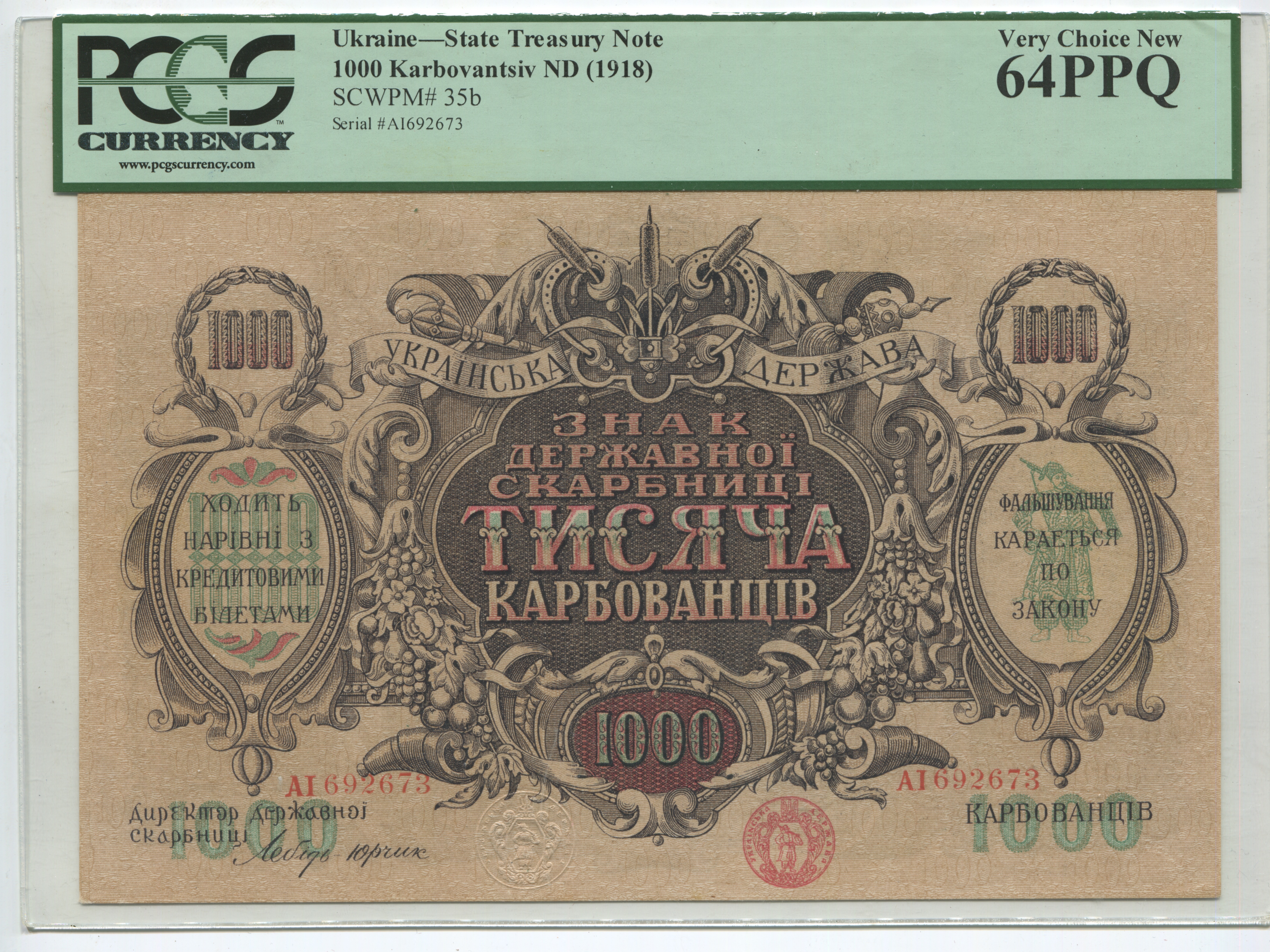 Ukraine 1000 Karbovantsiv 1918 (ND) PCGS 64PPQ