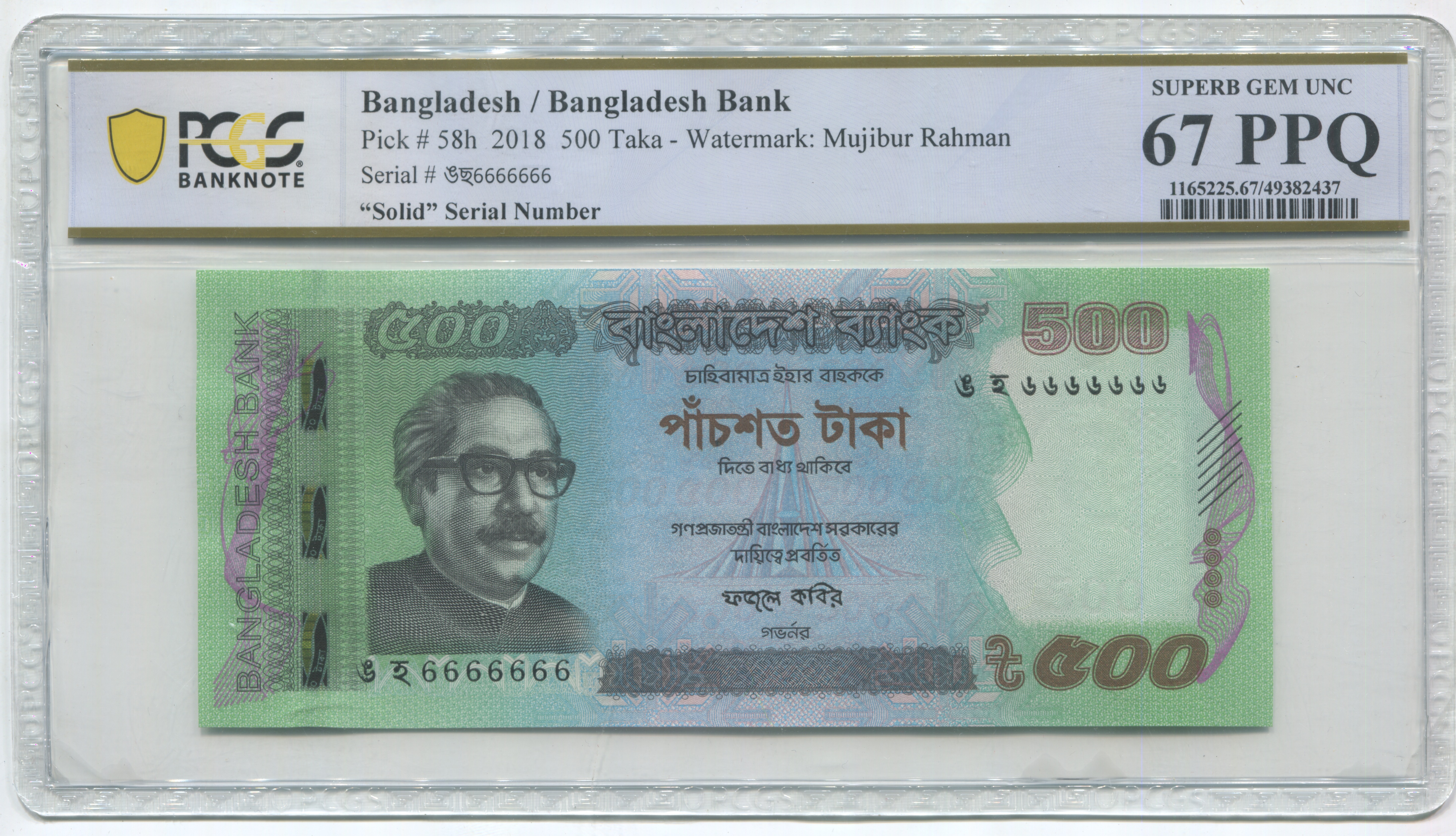 Bangladesh 500 Taka 2018 Solid "7" PCGS 67PPQ