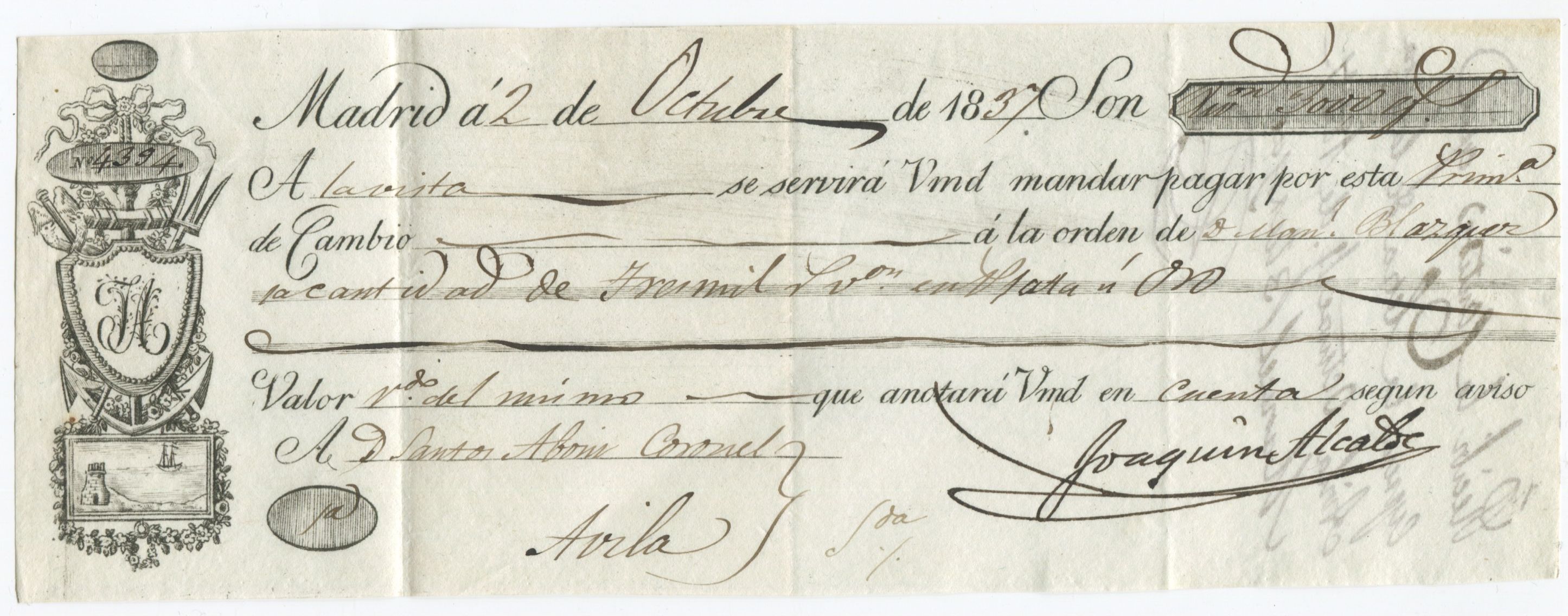 Spain Joaquim Alcalde Bill of Exchange for 3000 Reales Vellon 1837