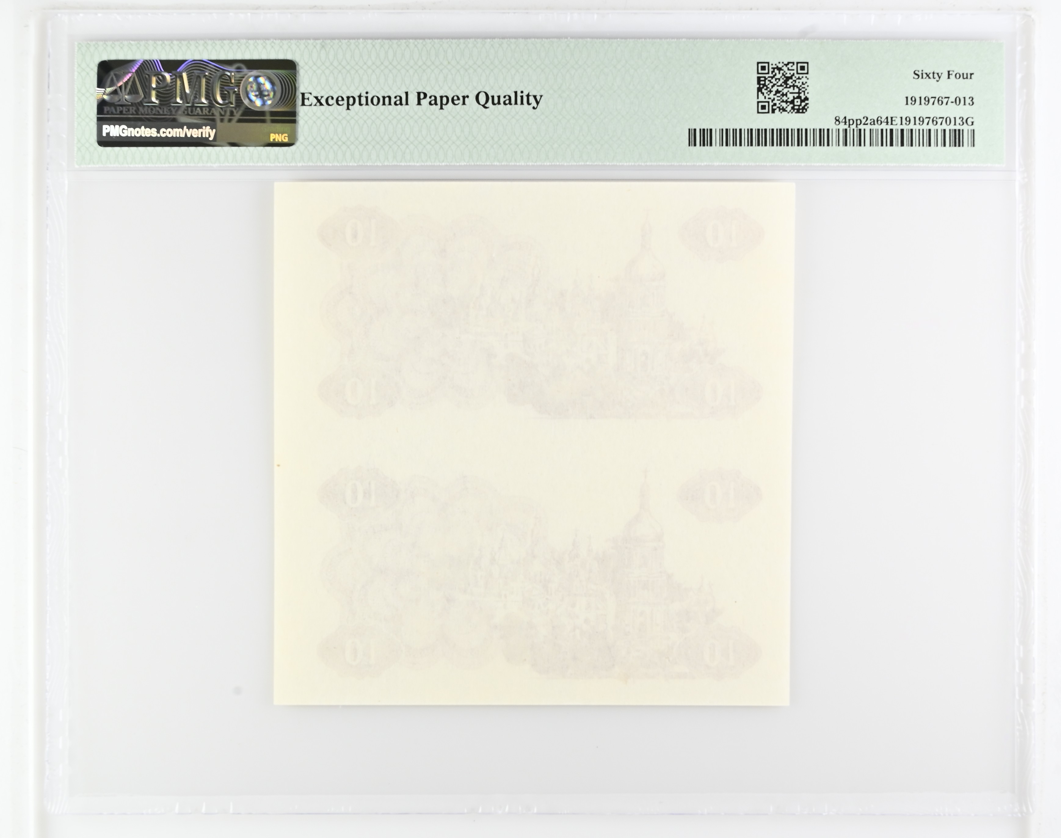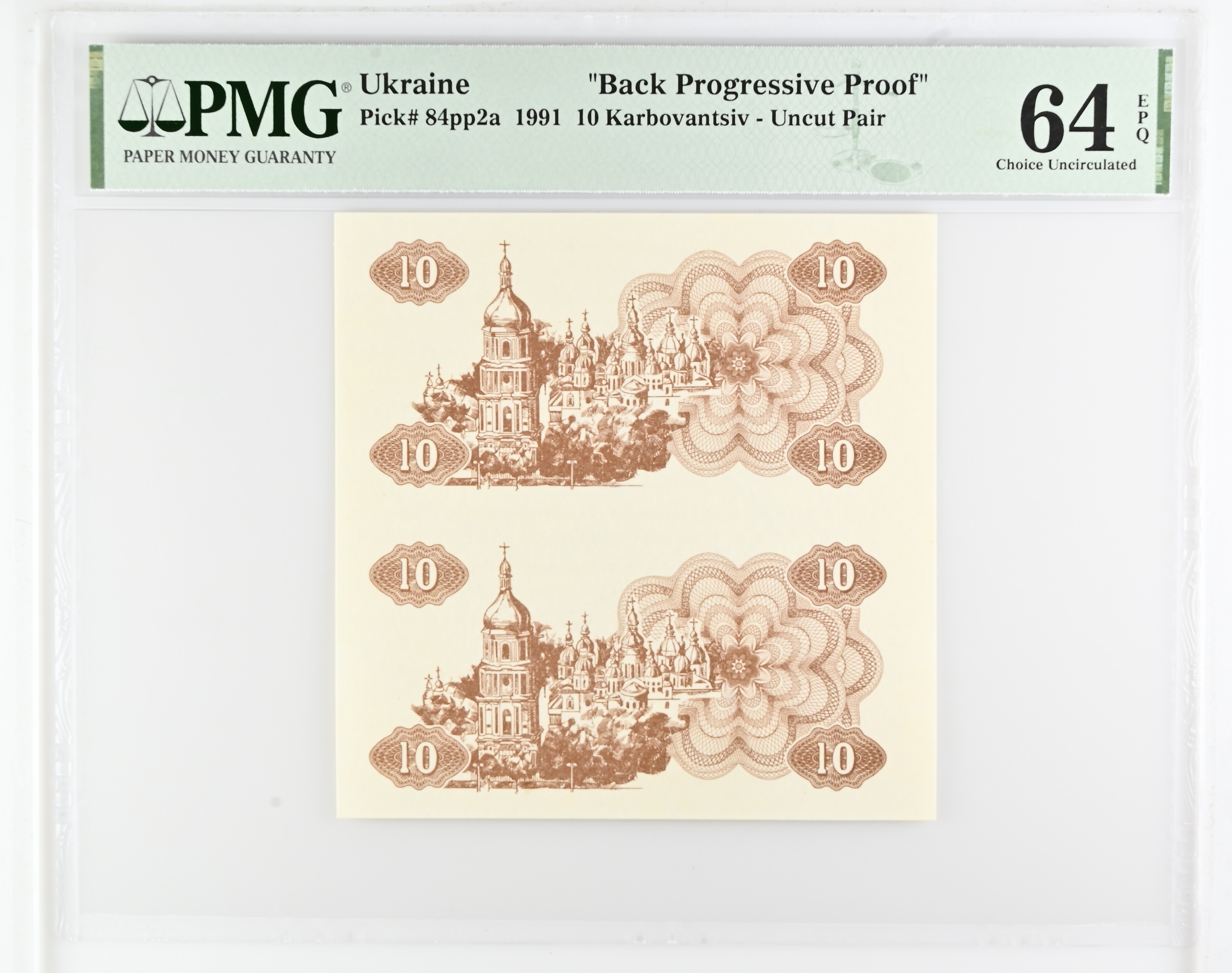 Ukraine 10 Karbovantsiv Uncut Pair 1991 Back Proof PMG 64EPQ