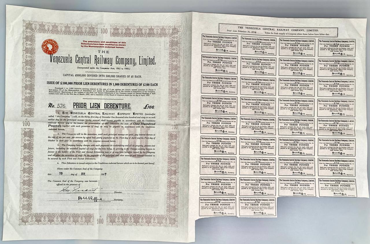 Venezuela Central Railway Co Ltd, £100 Debenture 1927 just 1000 issued