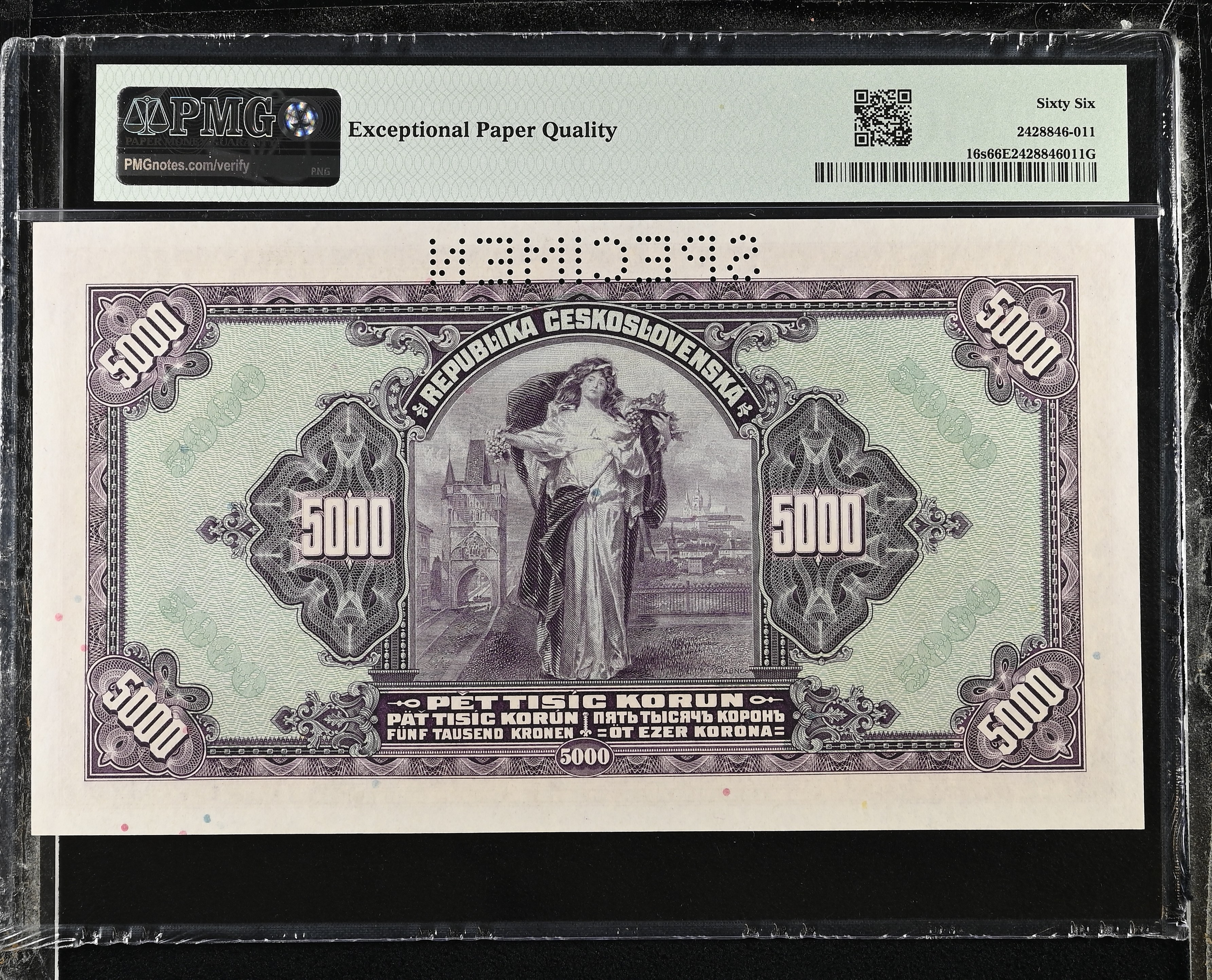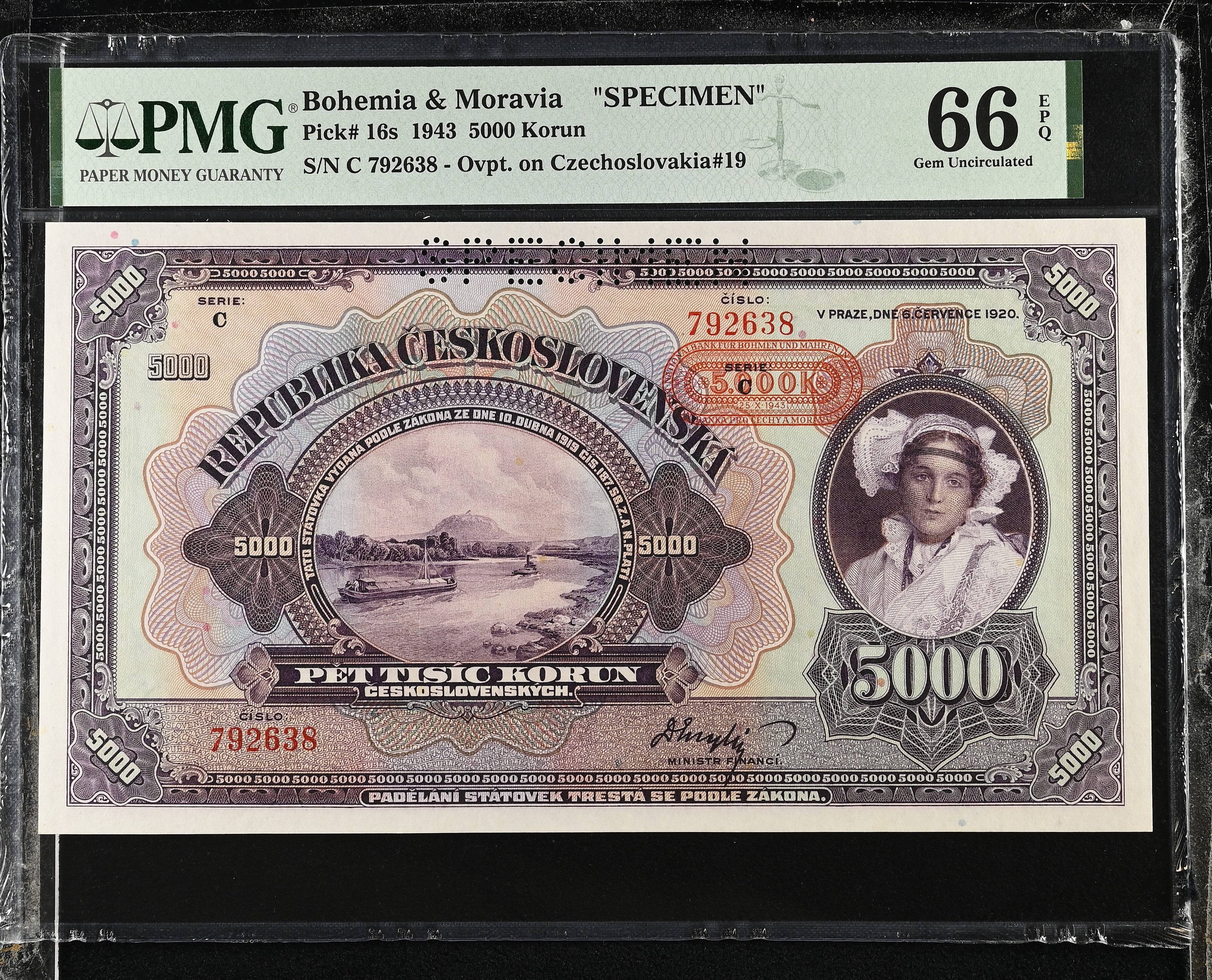 Bohemia & Moravia 5000 Korun 1943 Specimen PMG 66EPQ Gem UNC