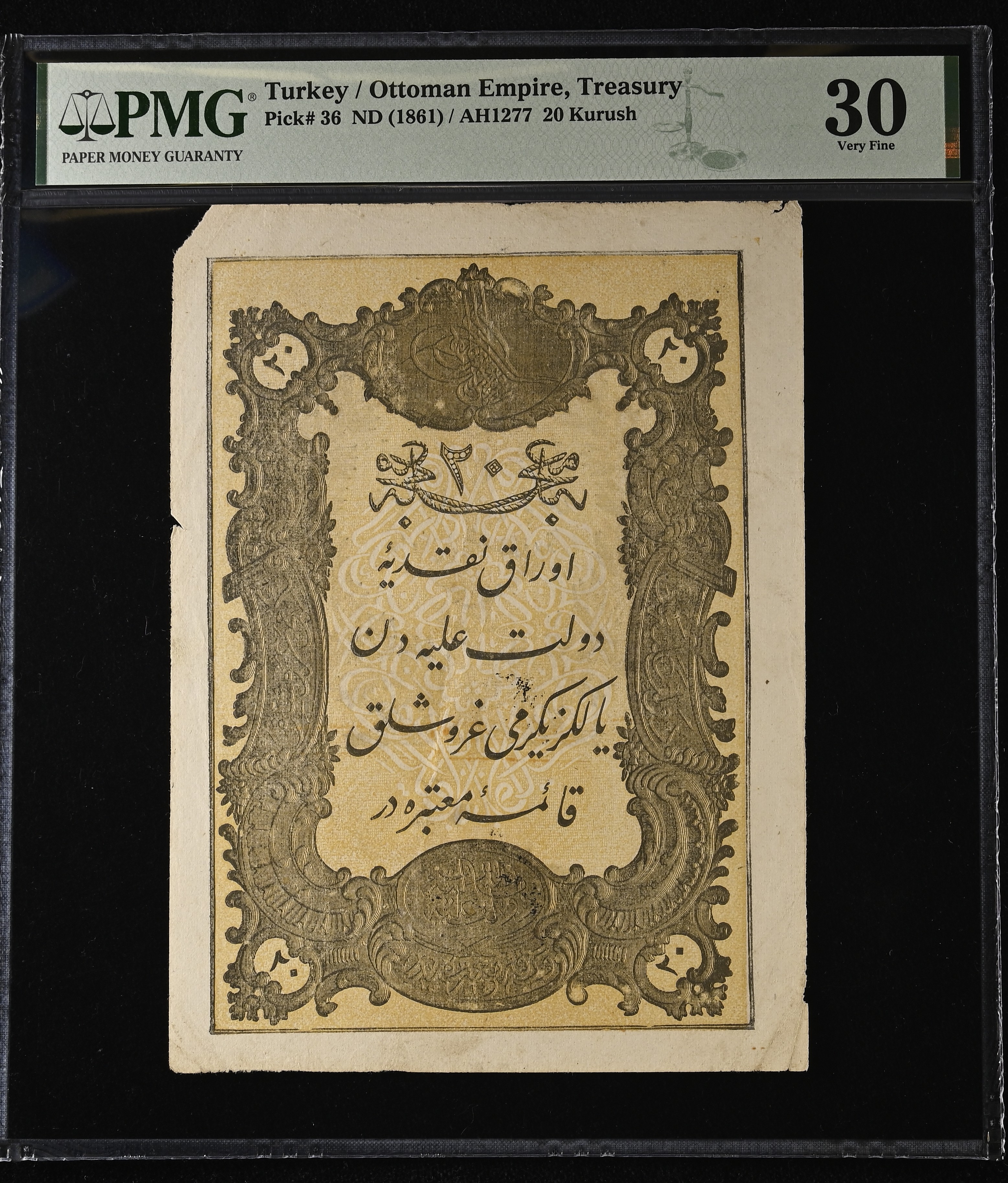 Ottoman Empire 20 Kurush 1861 PMG 30 Very Fine