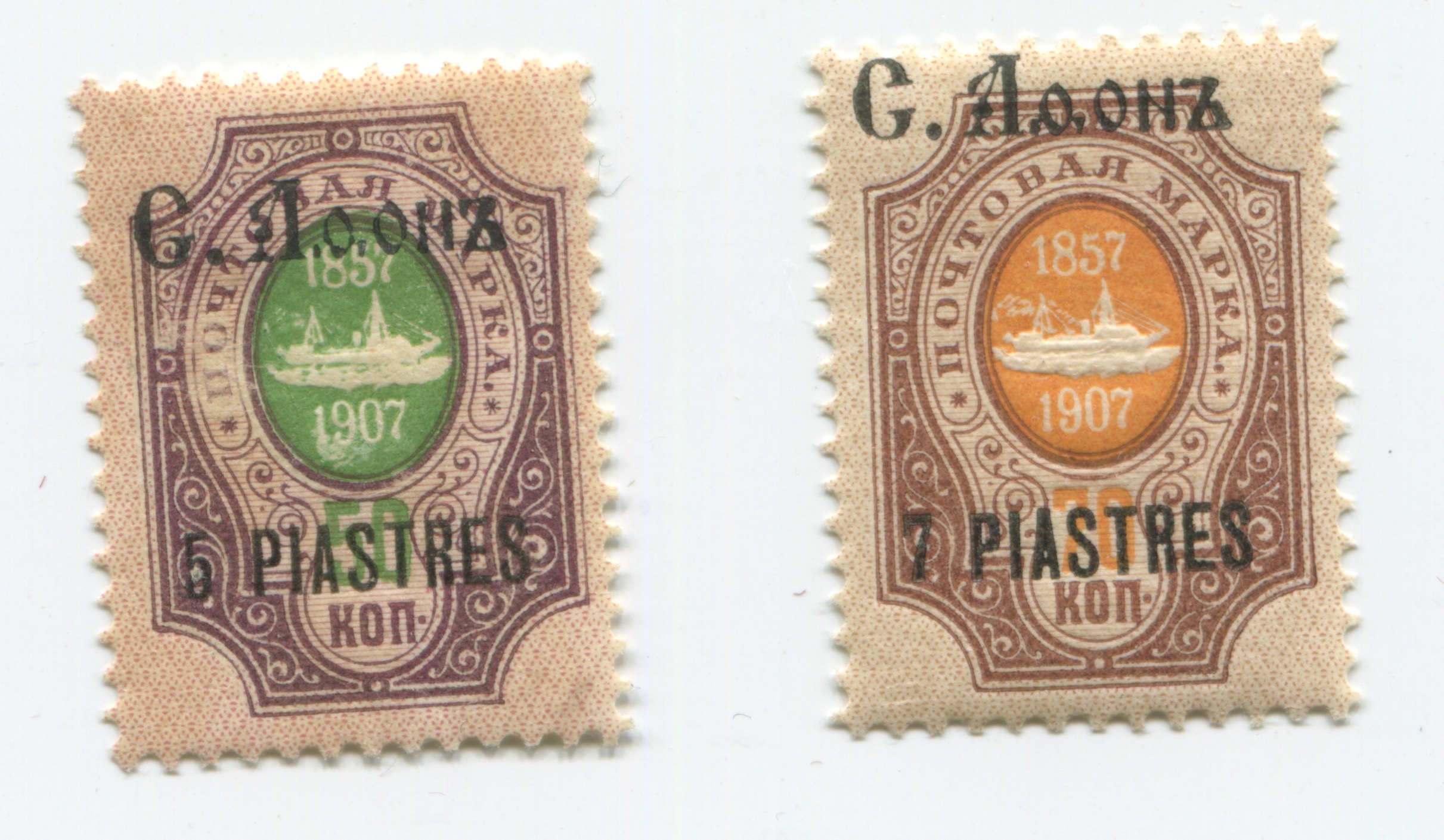 Ottoman Empire Russia Greece ROPIT Saint Athos 5 - 7 Piastres 1907