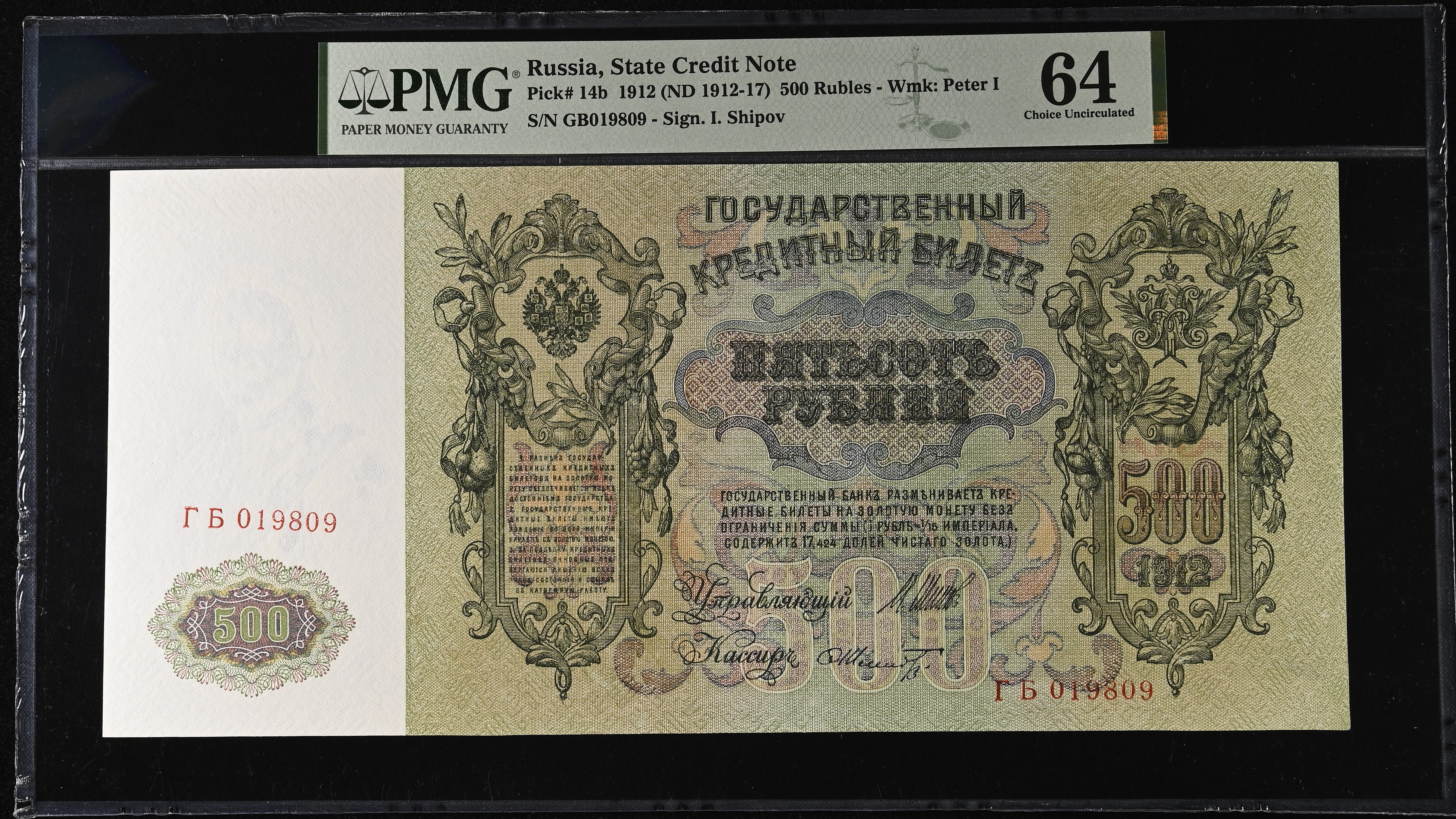 Russia 500 Roubles 1912 PMG 64 Choice UNC