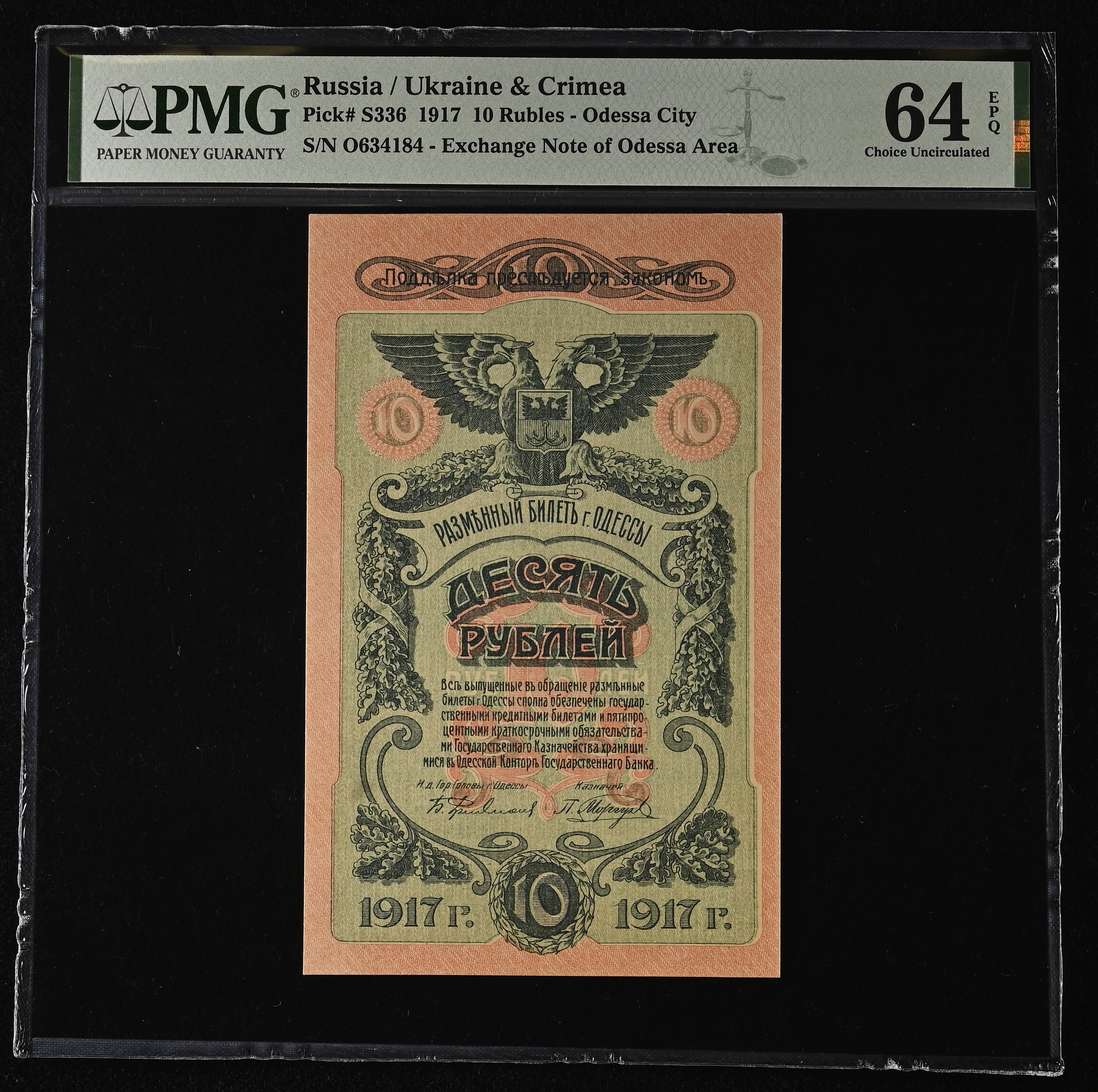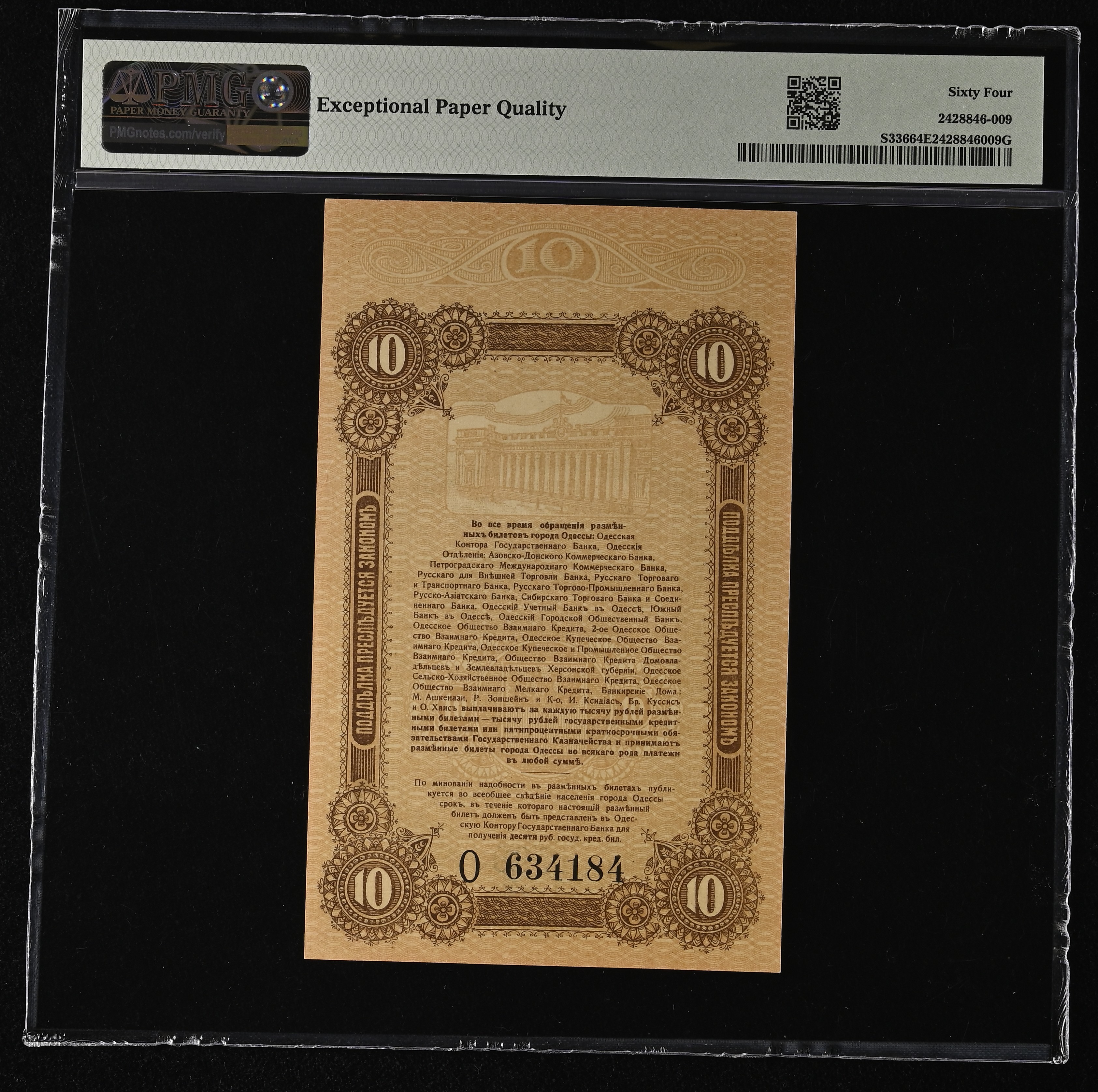 Russia - Ukraine Odessa 10 Roubles 1918 PMG 64EPQ Choice UNC