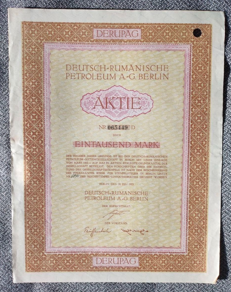 Romania Deutsch-Rumänische Petroleum AG Berln 1922 Share 1000 Mark