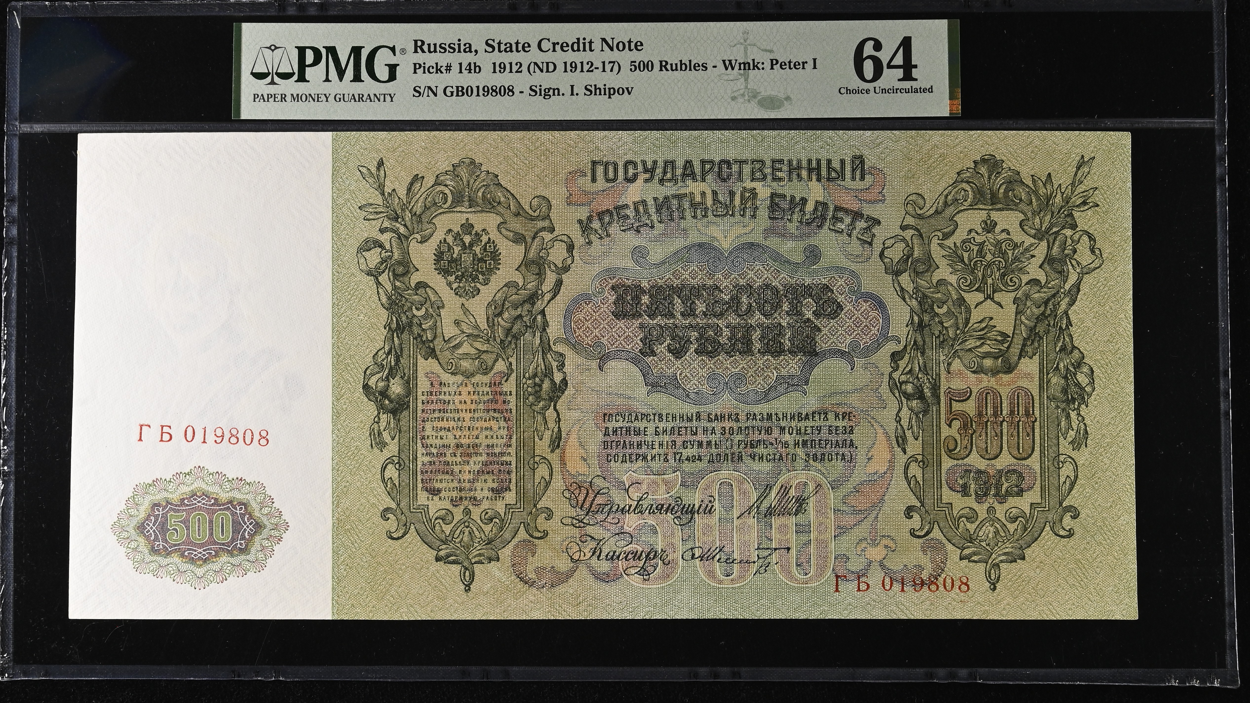 Russia 500 Roubles 1912 PMG 64 Choice UNC
