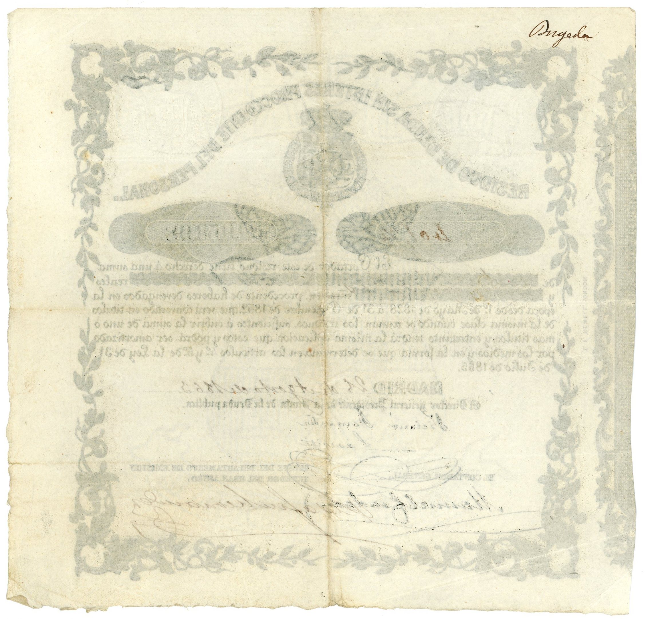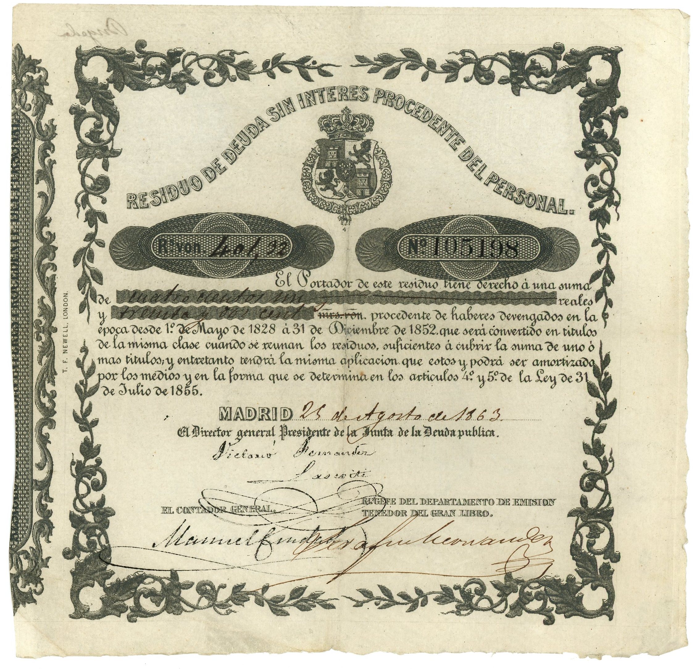 # 105198 Issued in Madrid and signed by Presidente de la Junta de la Deuda Publica (Public Debt Office) VF