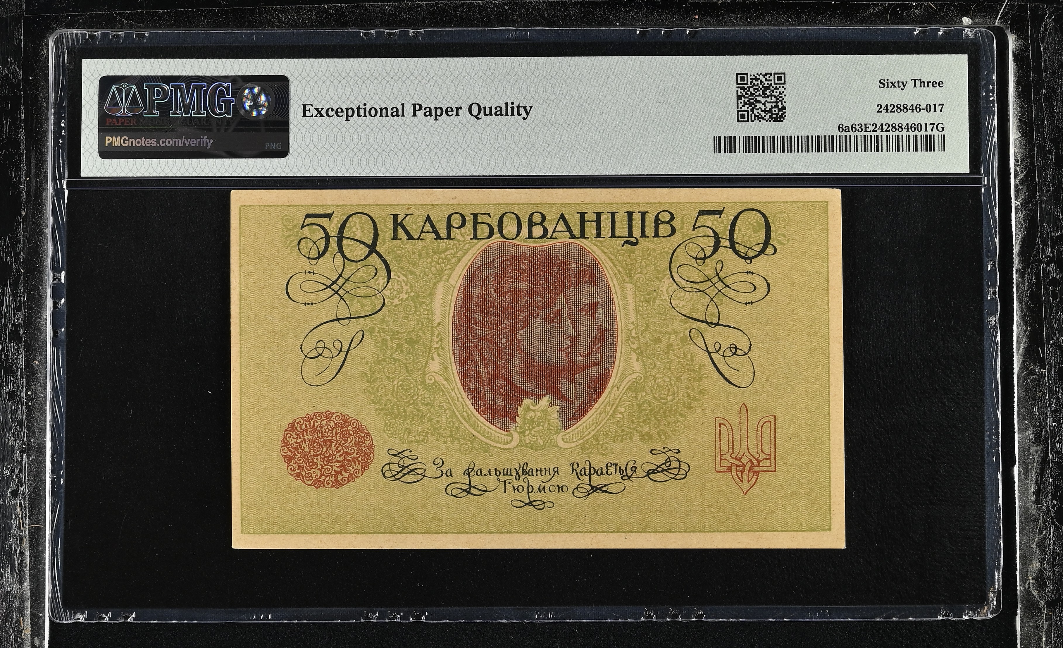 Ukraine 50 Karbovantsiv 1918 PMG 63EPQ Choice UNC