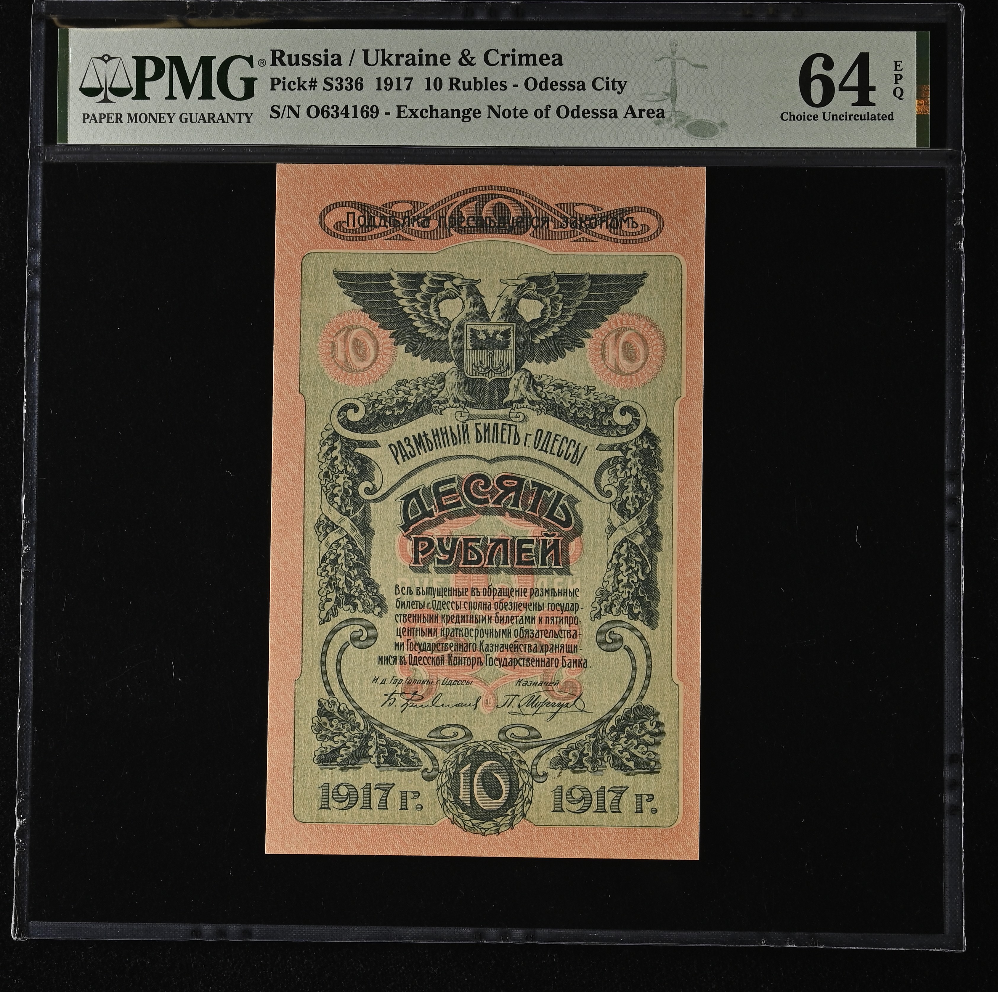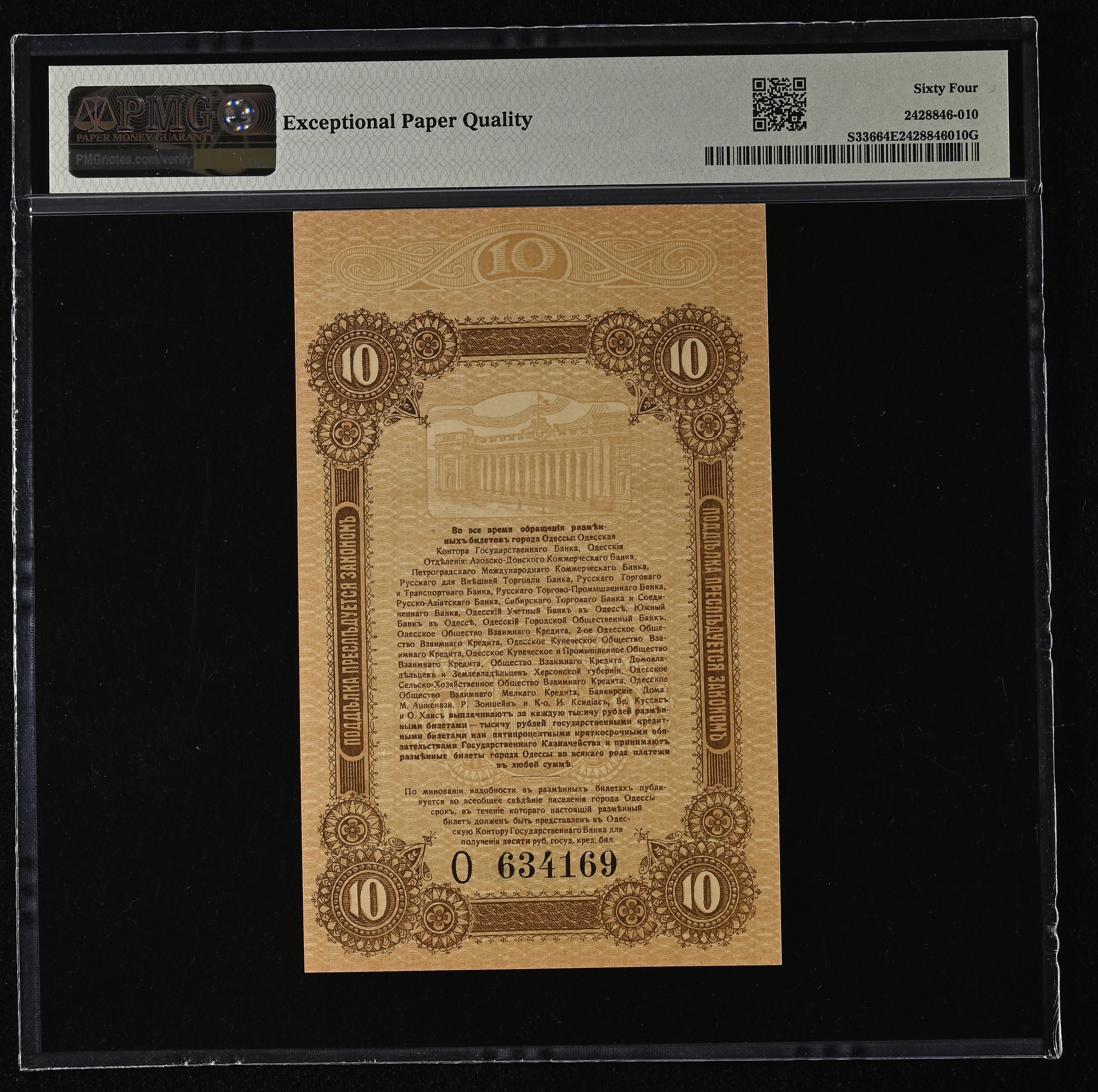 Russia - Ukraine Odessa 10 Roubles 1918 PMG 64EPQ Choice UNC