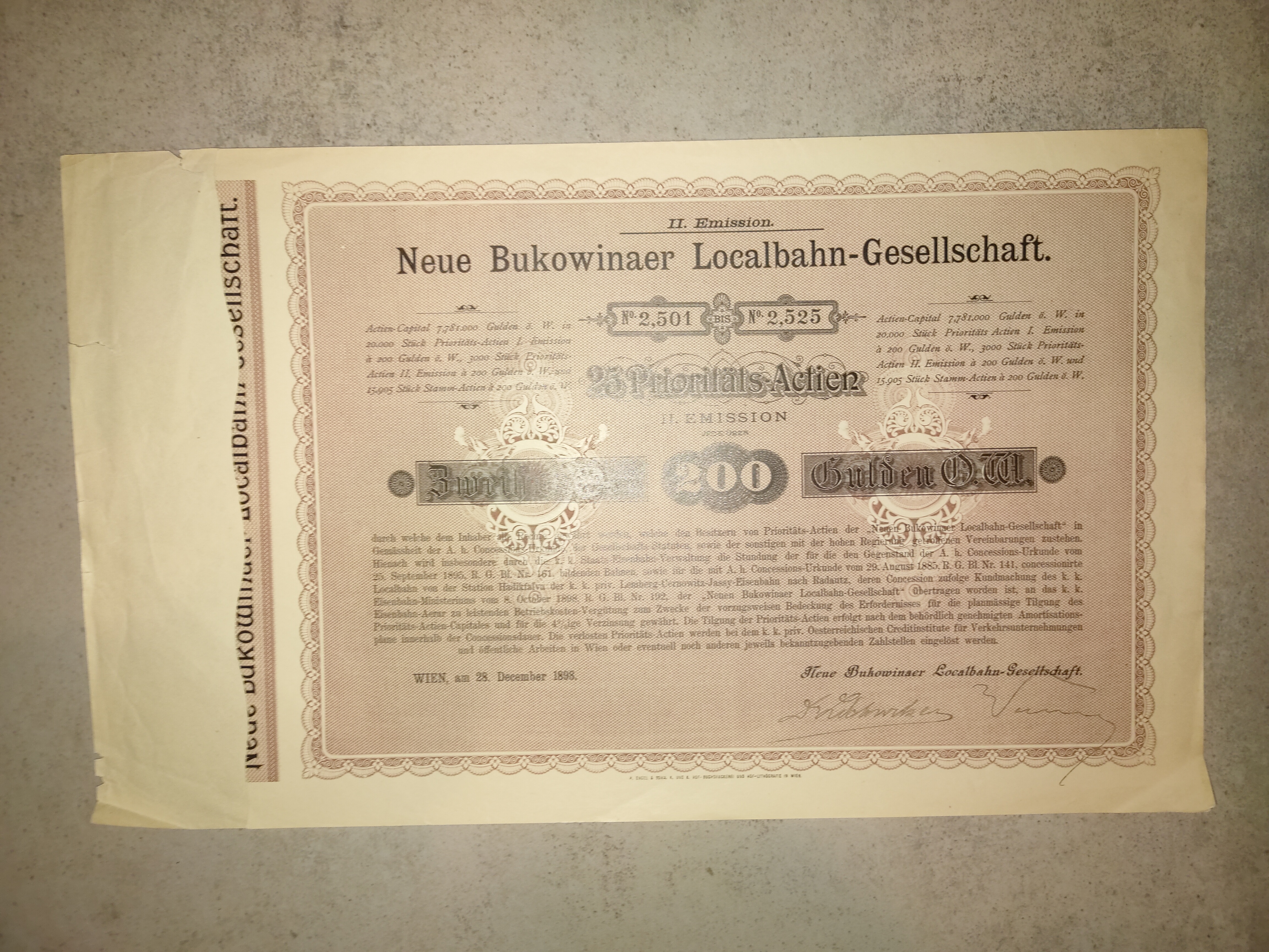 # 2501 – 2525 2nd issue; the company was founded to build and operate local railways in the district of Czernowitz, Bukowina (or Bucovina, the area split between Romania and Ukraine). Low number, on eof lowest known for this series