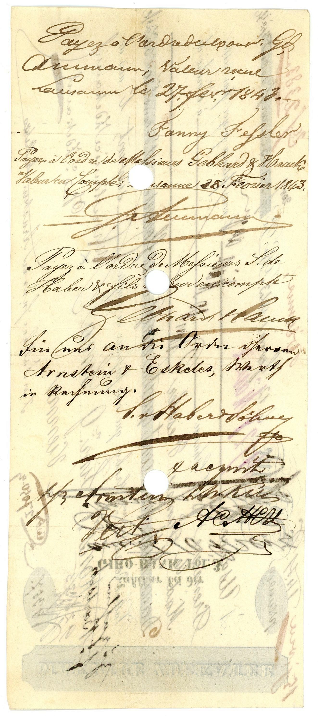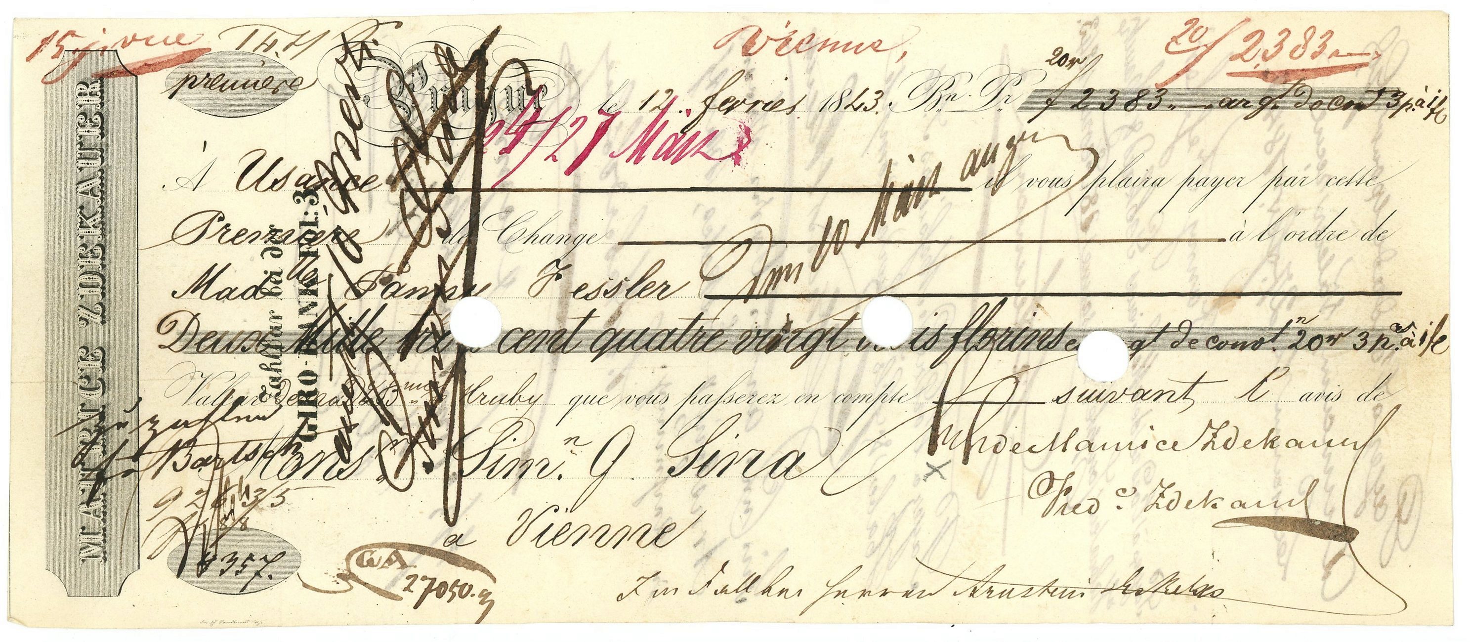 Bils of Exchange drawn to Fanny Fessler by Moritz Zdekauer, a Prague banker, who became famous due to his purchase and futher development of the world famous porcelain factory renamed after him. The factory still operates today under name of Moritz Zdekauer 1810 S.R.O. Hamd-signed by M Zdekauer XF